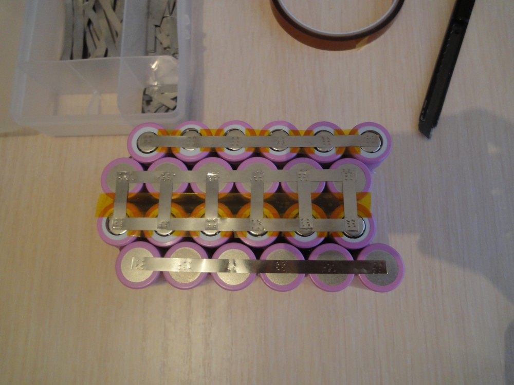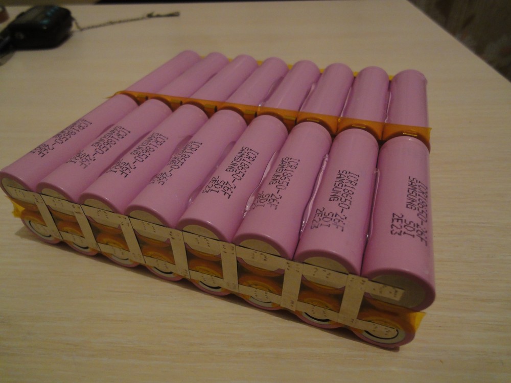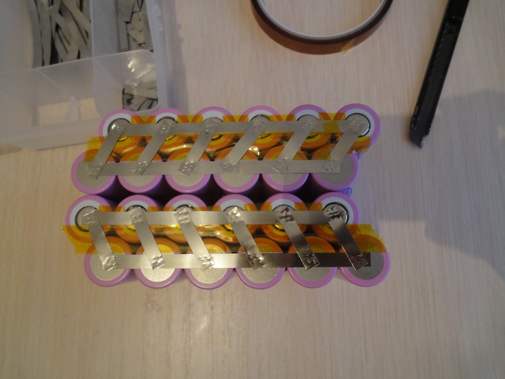 Рекомендую сделать из 24 банок (по 6 в параллель) или 32 банок (по 8 в параллель) на 15 Ач и 20 Ач соответственно