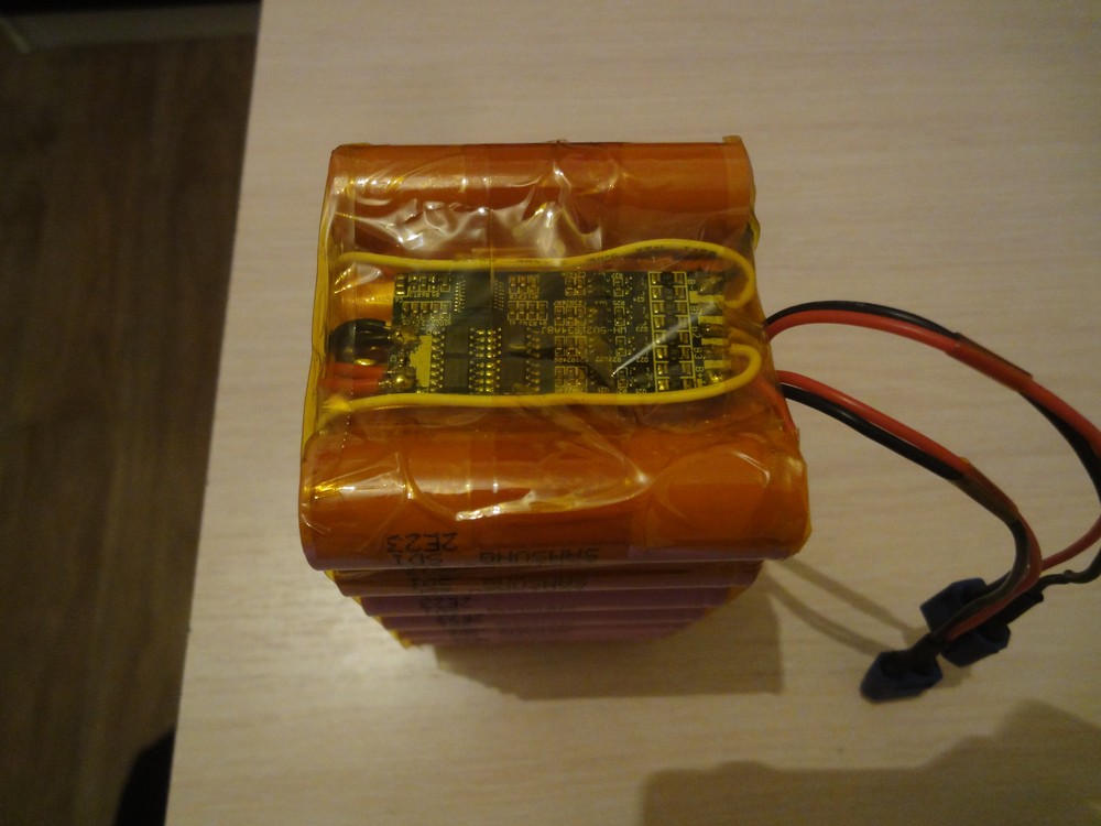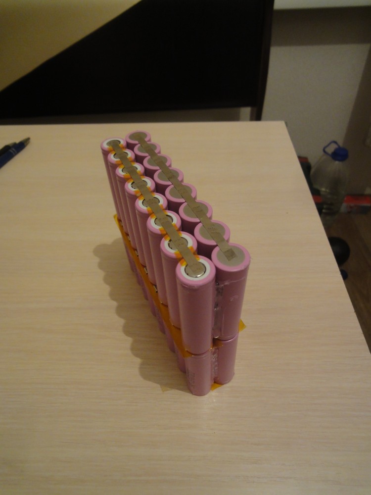 Можно до 6S (6 последовательных - 4,2*6=25,2V мах), а у меня 4S. Количество параллельно подключенных элементов в одном последовательно соединяемом блоке может быть любым. Артем собрал мне вторую АКБ (на фото выше) - 4S6P.