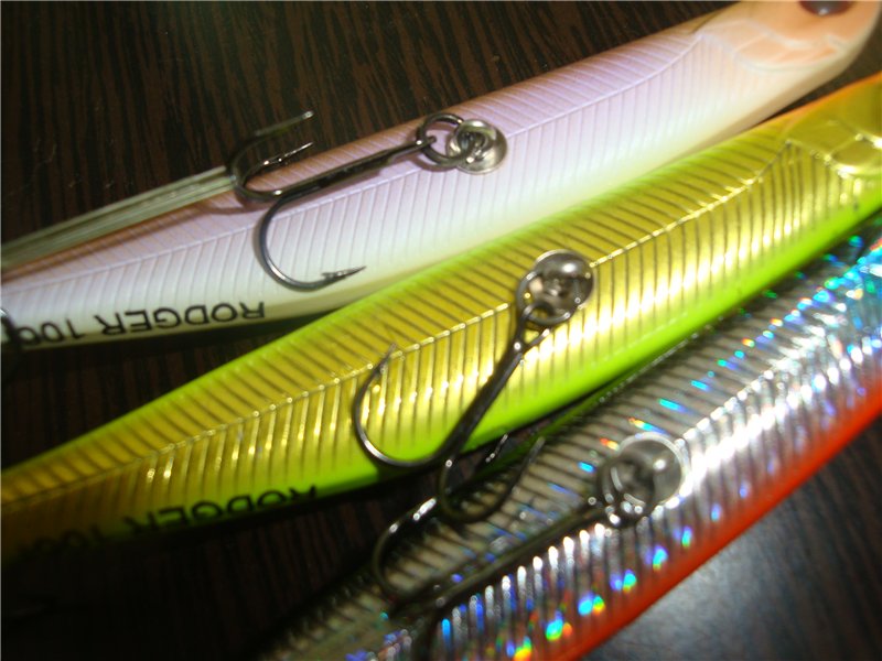 Первым я решил испытать воблер под названием Rodger 106f. Очень узнаваемый воблерок. Вывел я его в первые ряды не случайно. На протяжении нескольких сезонов, я очень удачно ловил на Бент Минноу. Работал как весной-осенью, так и летом. Особенность воблера в отсутствии лопаты (по ошибке его многие принимают за топвотера) и узнаваемом изгибе (из-за него, многие прозвали его банан). Огрузка на пике изгиба и конусное тело, при проводке заставляют воблер нырять на не большую глубину и совершать безумно красивые рысканья. Воб, получается по сути универсальным, короткие плавные потяжки и он идет практически у поверхности, резкие джерковые удары и воб пойдет на 50(а то и на 80) сантиметрах... Игра сказочная, рыскает очень красиво, правда ценник на него сейчас мягко сказать не гуманный... Но разговор о другом изделии...