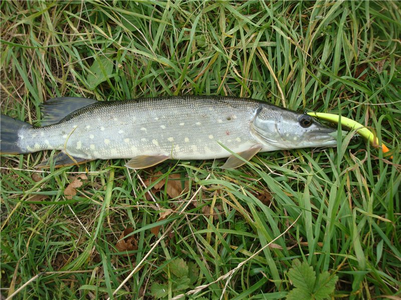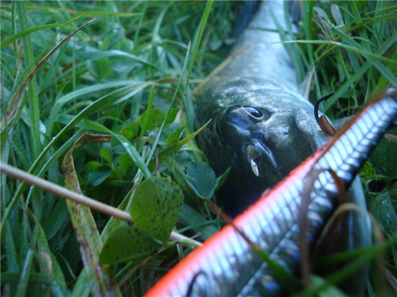 Щука реагирует на него очень активно. К сожалению, сейчас август месяц и стоит безумная жара. Так что в местах, на которых я проводил испытания сейчас крупной щуки нет, но шнурки до двух с половиной килограмм не могут устоять. Веду я по поверхности, или заглубляю дальше полуметра, я всегда с рыбой. Доходило до двенадцати рыб за полтора часа полосканий, в то время как встречающиеся спиннингисты жаловались на отсутствие клева.