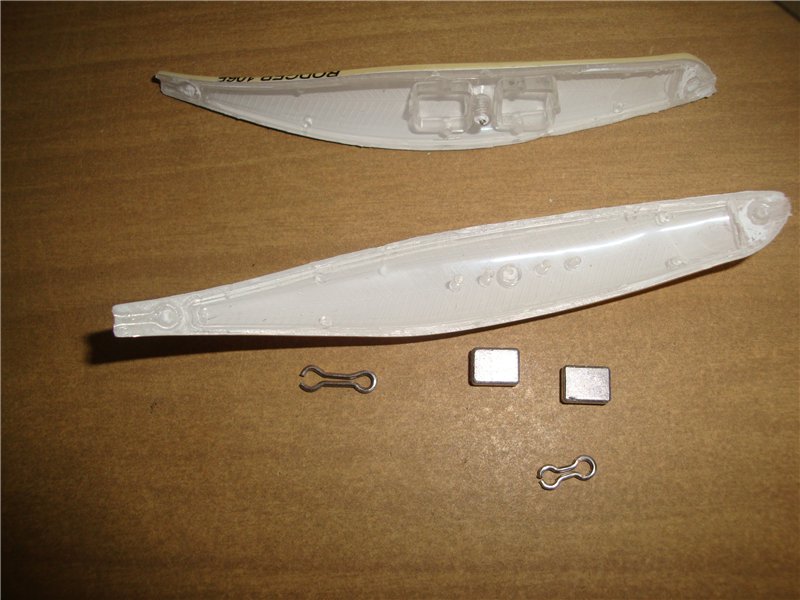 Сразу выявилась проблема при забросе. Довольно не стабильный полет воблера немного напрягает, и положить его с ювелирной точностью не получится. Из-за формы тела и, видимо, из-за решения производителя оставить идеальную игру в ущерб аэродинамике воблер летит немного не предсказуемо. На 30-40 метрах не контролируемое отклонение около метра-двух. Видимо это связанно с системой дальнего заброса, которой нет и парусности, которая при подобной форме тела довольно серьезная. Вскрытие показало, что на пресс-формах не экономили. Пластик отлит на 5+. Есть желание испытать на разрыв всю фурнитуру, но на щупаках до 2.5кг не подводила. Внутри все выверено и подогнано на довольно высоком уровне. Груза являются как стабилизирующими игру воблера, так и шумовыми из-за изготовления камеры немного большего размера, чем сами грузики. Металл, к сожалению, определить не могу, дороговата экспертиза...