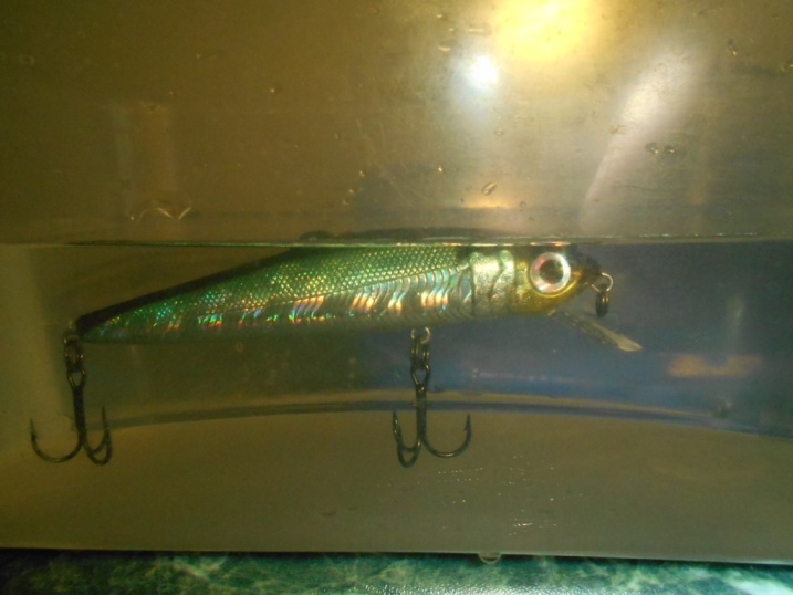 В чём особенность этого воблеришки? Ну во-первых его вес у разных продавцов колеблется от 9 до 11 грамм но это не мешает ему быстро всплывать башкой вверх. В таком положении и пробочной плавучести отзывается на анимацию просто отвратительно, ничего не умеет, единственное светлое пятно это равномерка, но с такой проводкой элементарно справляется обычная вертушка. Что делает на попытках анимации можно понять по короткому видео.