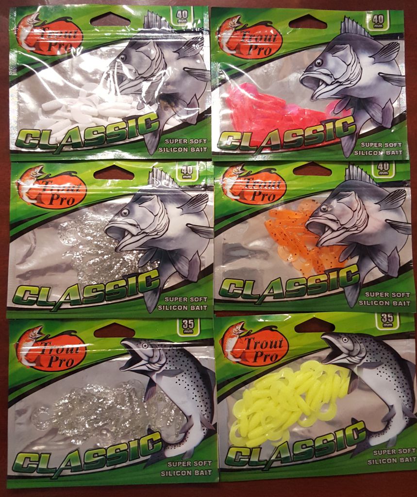 Твистер Trout Pro Classic 40мм (упак 20шт) цвета 35370x1, 35364x1, 35382x1, 35372x4 - 7 упаковок по 100 руб