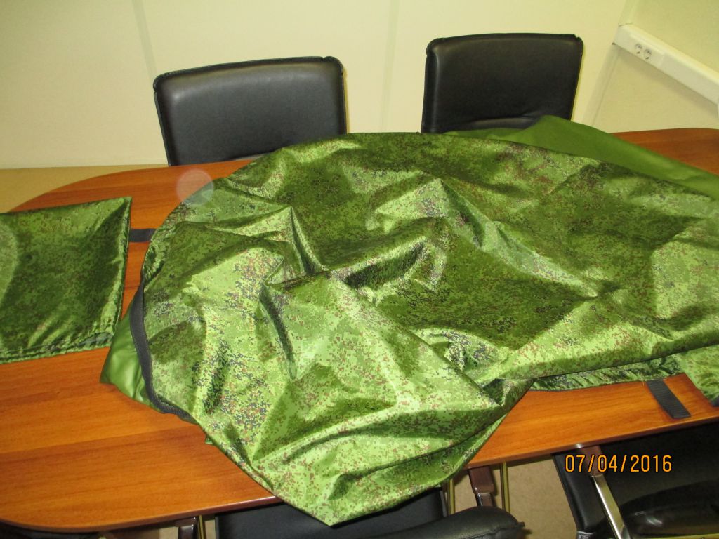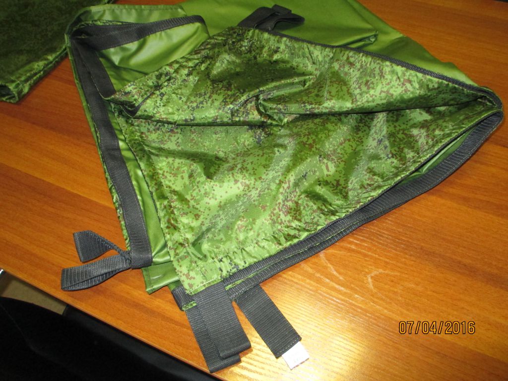 Здравствуйте! Тент 3.5м х 4.0м. из материала КМФ зеленая цифра( нижнее фото в Вашем сообщении от31 мар 2016 23:55) с петлями по периметру пошить сможете?