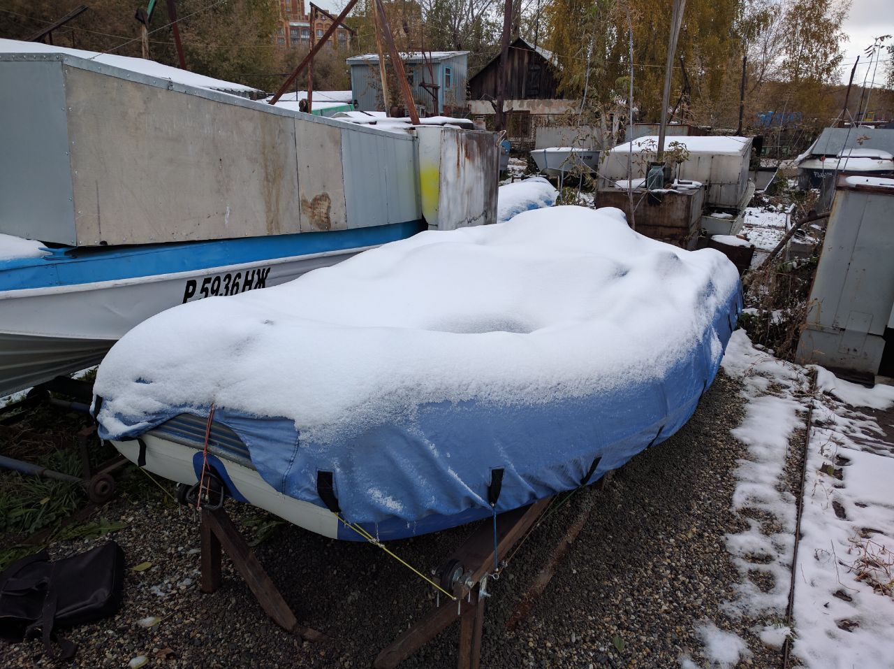 лодка у меня большая, стоит на лодочной базе с ранней снежной весны, под дождями и ветрами, сам тент с внешней стороны немного выгорел, а в остальном все прекрасно, свою задачу он выполняет отлично, спереди заказывали вырез под прицеп, но он не пригодился...тент сшит по-уму, для быстроты сделали крючки на резинках и теперь ставим дуги и натягиваем тент за 2-3 минуты