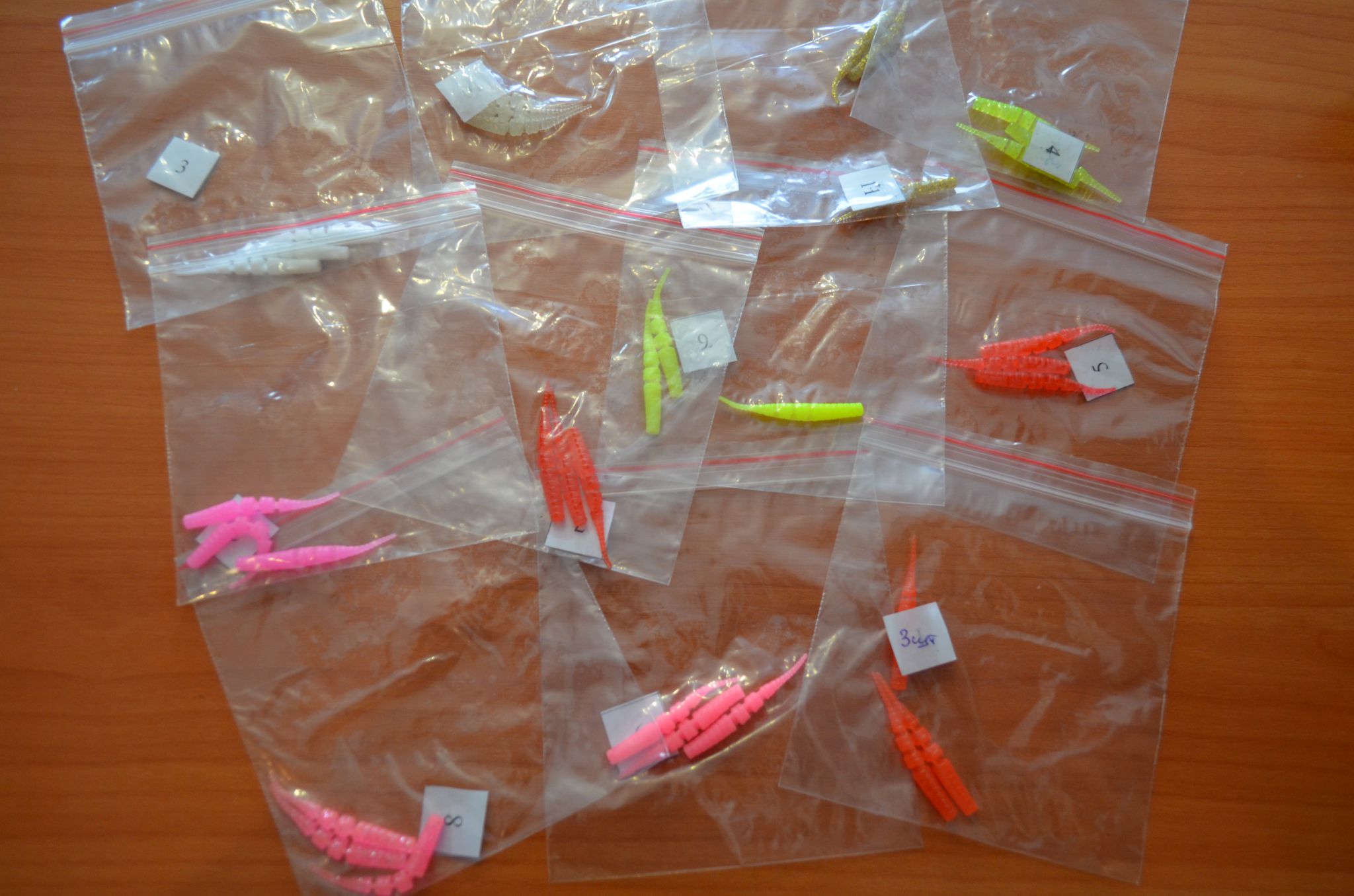 Итак, на тесты пришло 75 приманок, 25 пакетиков по три хвоста в каждом.