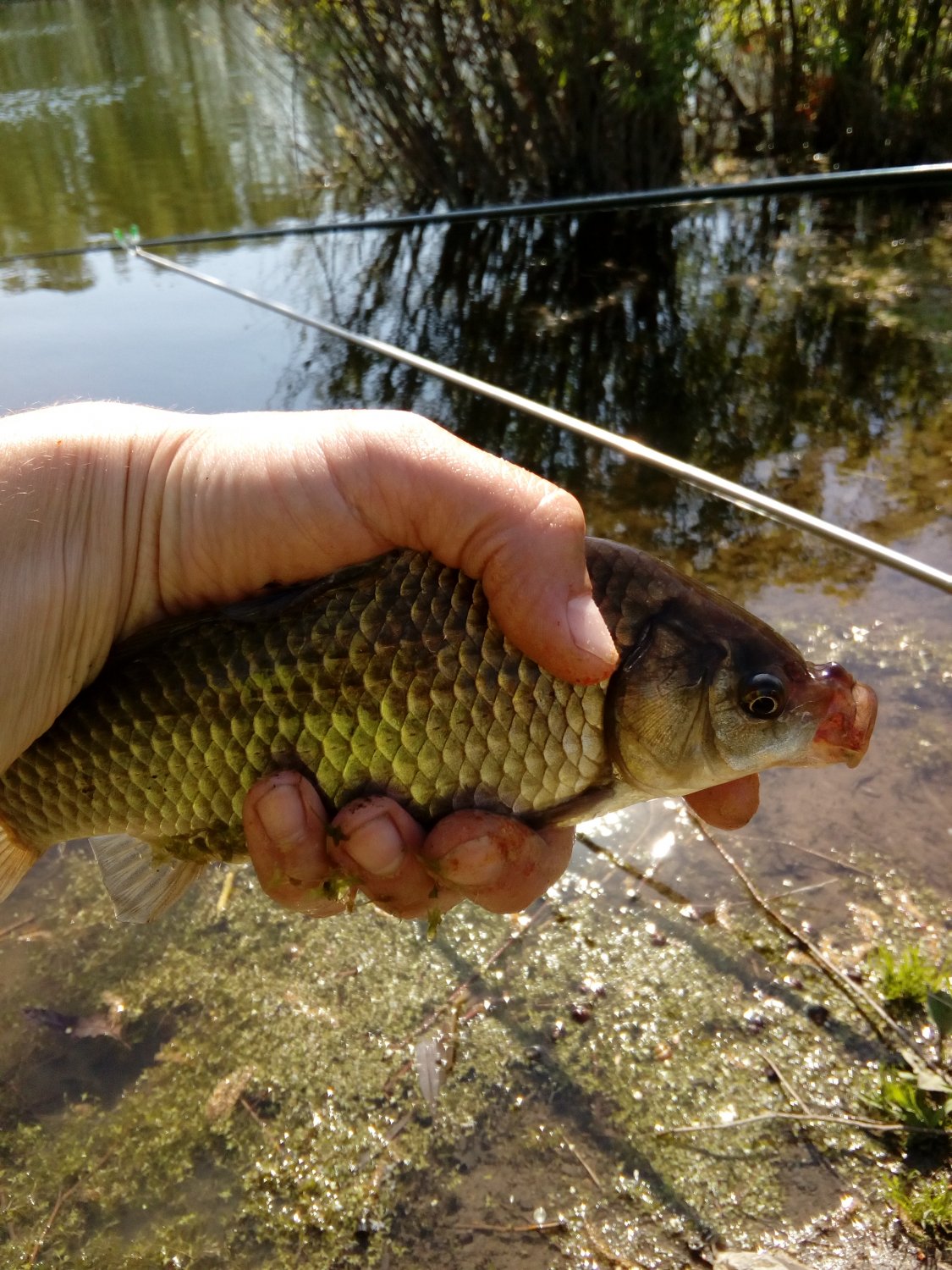 Первый карасик более менее размера. Еще было несколько не внятных тычков. Продолжаю наблюдения. Щас весть подробно накатаю-)