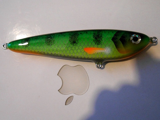 Продам джерк ручной работы. 15 см. 58 гр. (без тройников). Медленнотонущий (скорее умереннотонущий). материал - ПВХ. Финишное покрытие - комбинированное. Видео с тестированием этого джерка (снято с целью показать игру приманки) - https://www.youtube.com/watch?v=buSGrPJ ... e=youtu.be В наличии есть еще несколько готовых заготовок аналогичной формы. На заказ могу изготовить джерки с любой степенью погружения и раскраской.