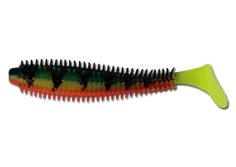 Протестировал таки Rage Spikey Shad Bulk 2.75"/60mm в цвете Firetiger,на офсетном крючке и подгруженым 6 граммовой разборной чебурашкой.Что могу сказать-окунь таки канибал,понравился ему этот цвет,рекомендую.Рыбачил на заливе ОВХ,снизу обильно заросшим всякой разной травой,по этому на дно не опускал,как будет вести себя на дне пока не проверял.