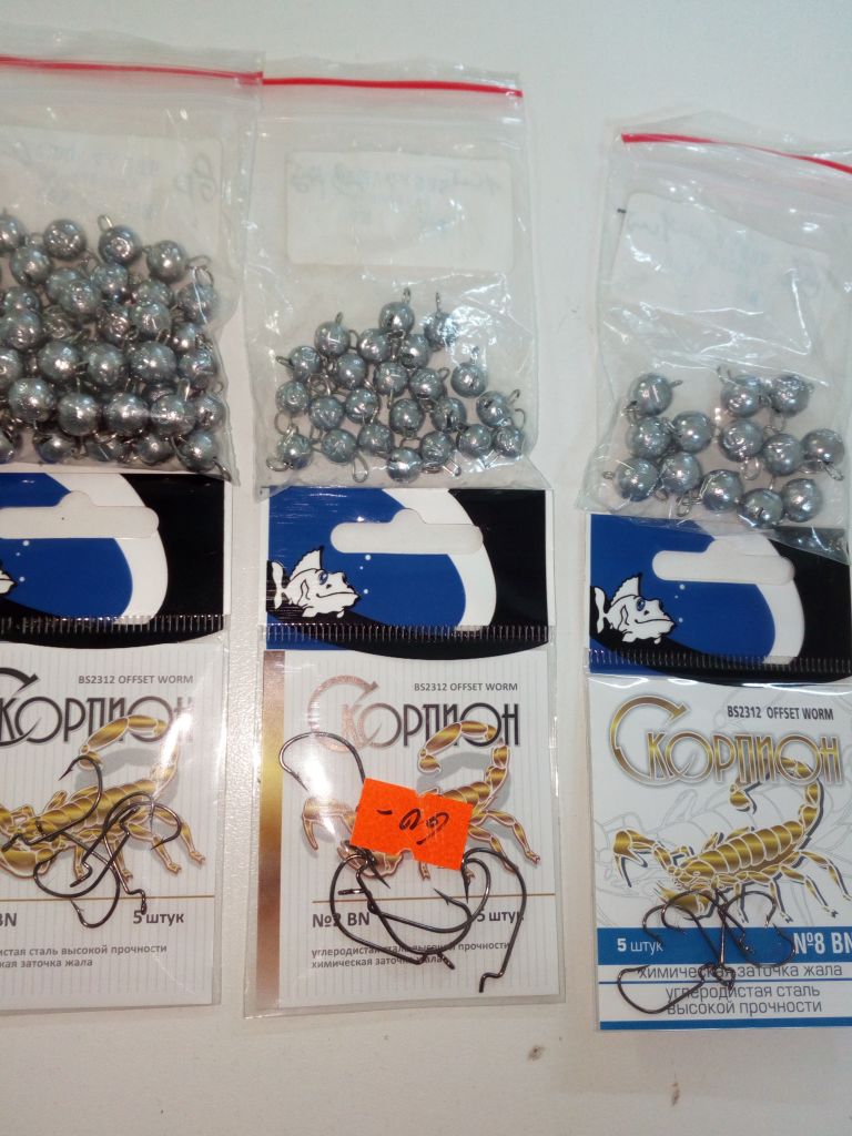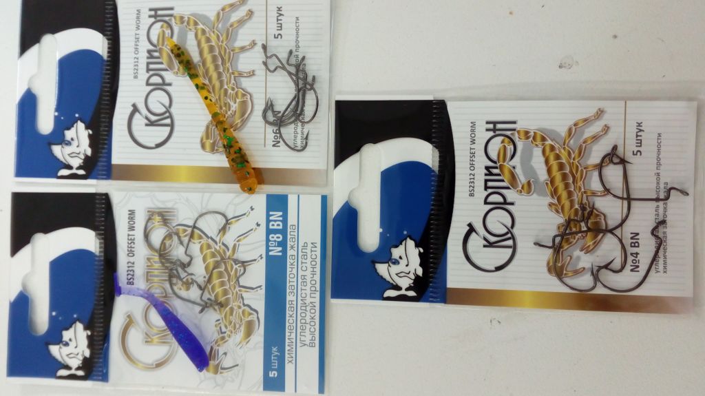 Офсетные крючки Рыболов. По пять штук, но очень маленькие.