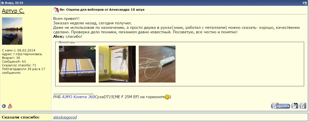 Мужики, это снова я, и как обычно отцепы для воблеров. В наличии отцепы на 750 и на 1000 грамм.