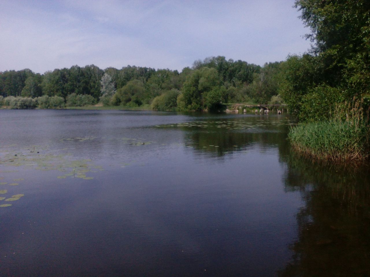 Были там с женой. 6 вечером приехали, 8 в обед уехали. Рыбачили на поплавочные удочки с берега и с лодки. С берега получилось 5 карасей, от ладошки и выше. С лодки за камышами, глубина порядка 50 см выловили сазана ~1.5 кг. У других камышей выловили карпа, тоже около 1.5 кг. Попался окунь где-то 25 см. Итого: 20 карасей от ладошки и выше, есть прям хорошие, 1 сазан, 1 карп, 1 окунь