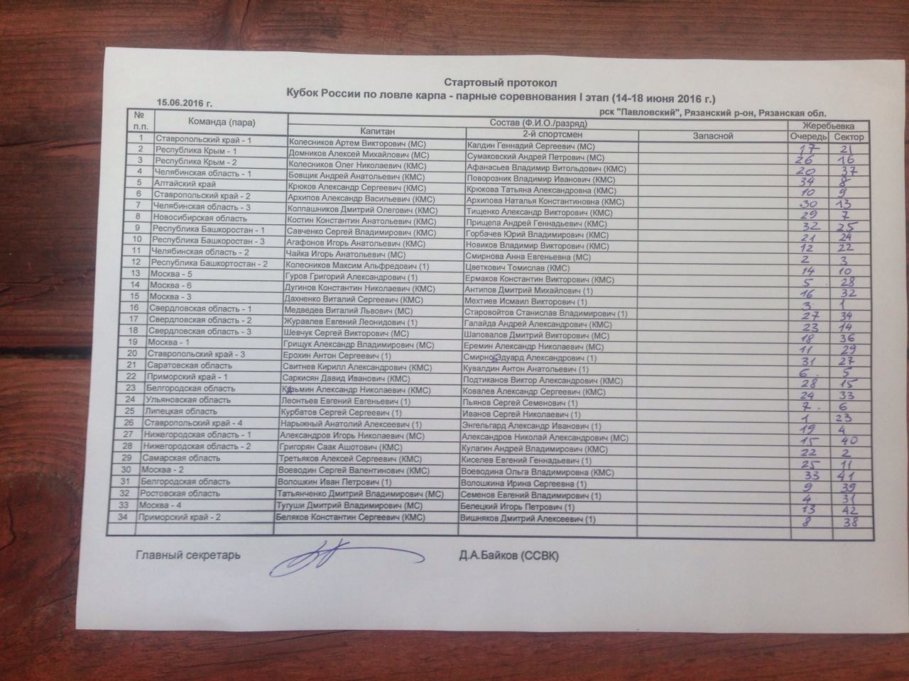 Стартовый протокол.