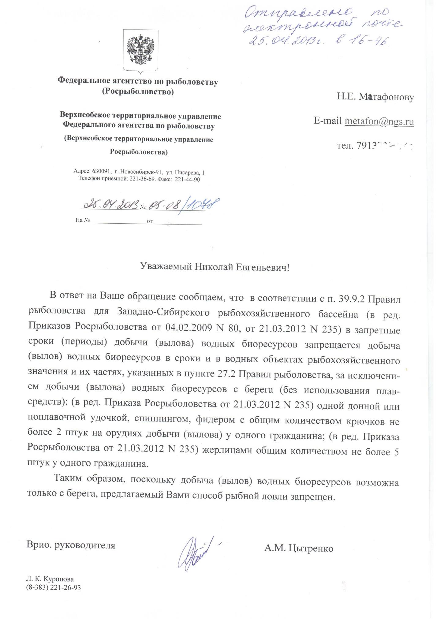 Не найдя ответа на вопрос о легитимности рыбалки "в забродку" в форме которая бы меня устраивала, т.е. со ссылкой на документ, решил обратится "к взрослым".