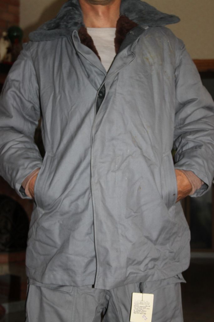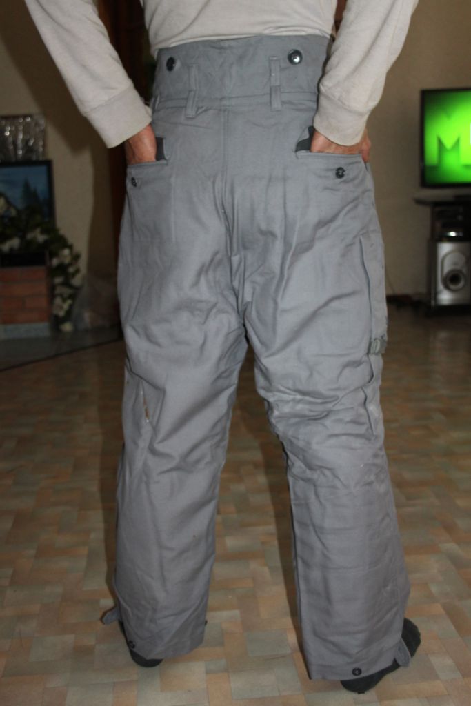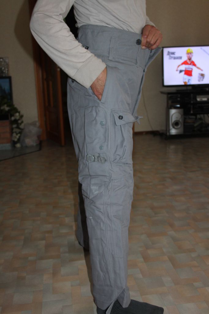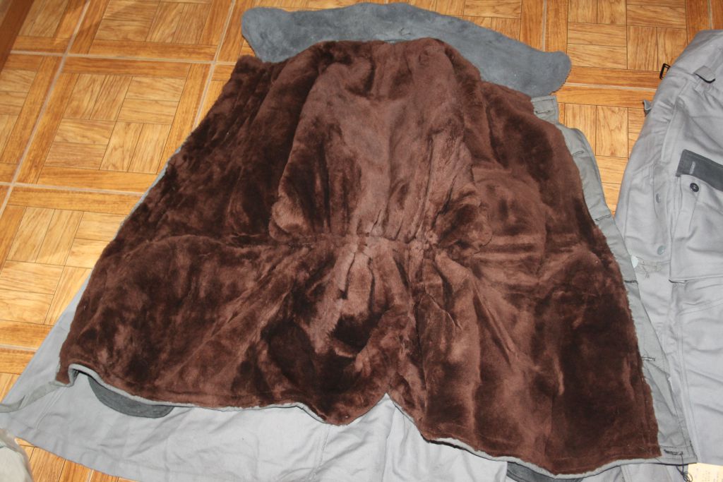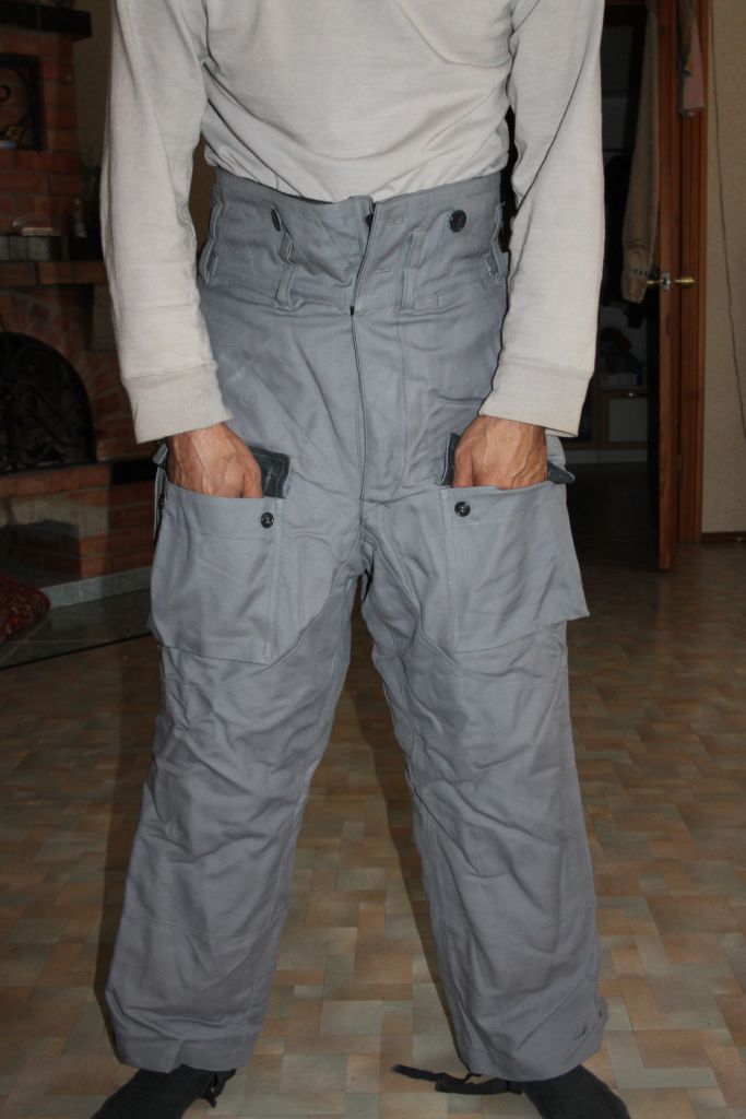 По компановке костюма- это прыжковка только с мехом. Брюки - два кармана спереди , два прорезных по бокам, два на заднице. На правой ноге, с боку карман под нож, с клапаном на пуговицах. Куртка- два прорезных кармана с низу куртки, и карман нагрудный для пистолета. Мех отстегивается.