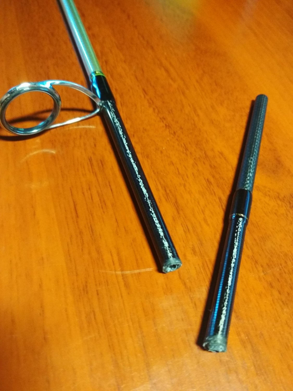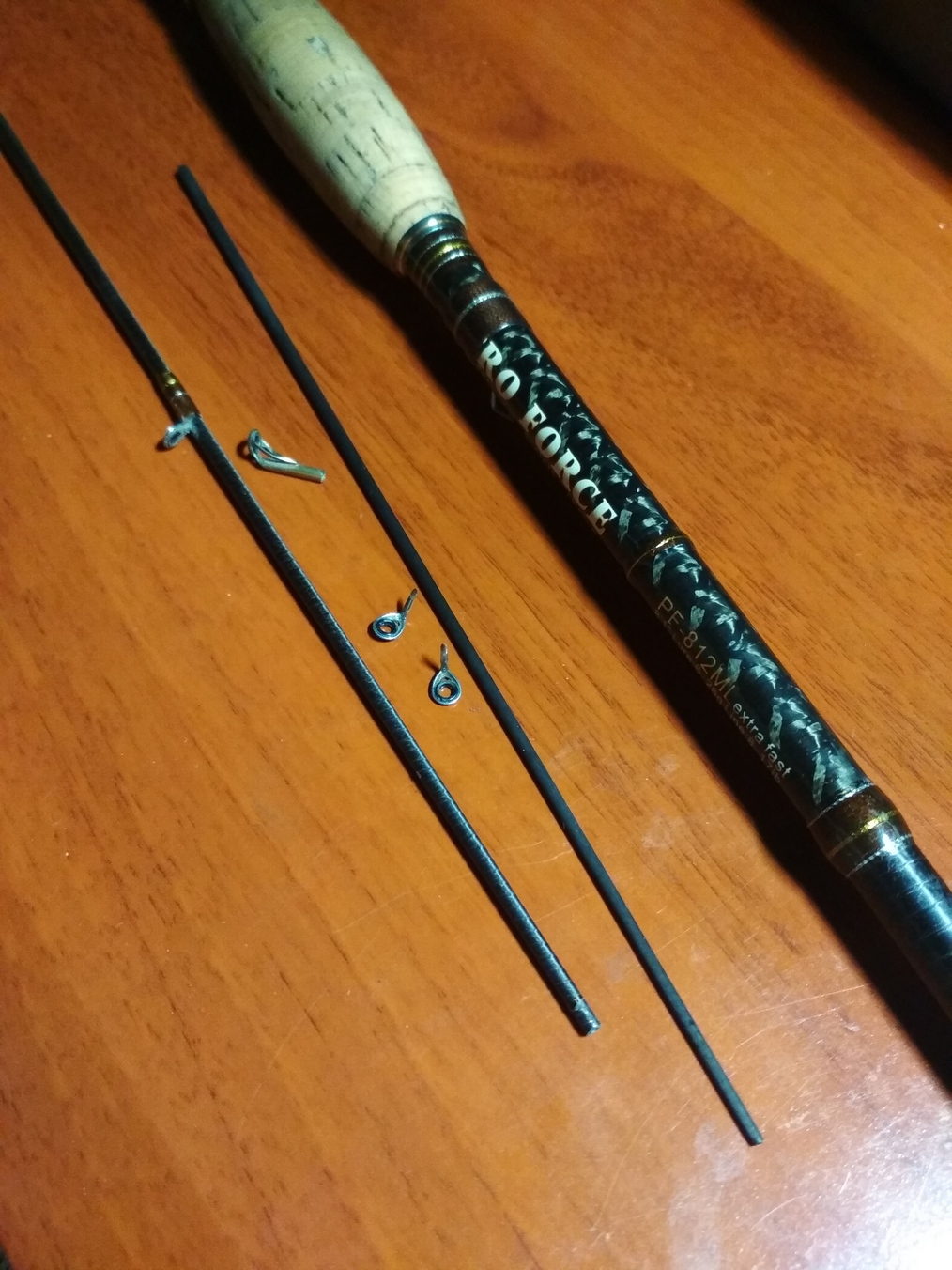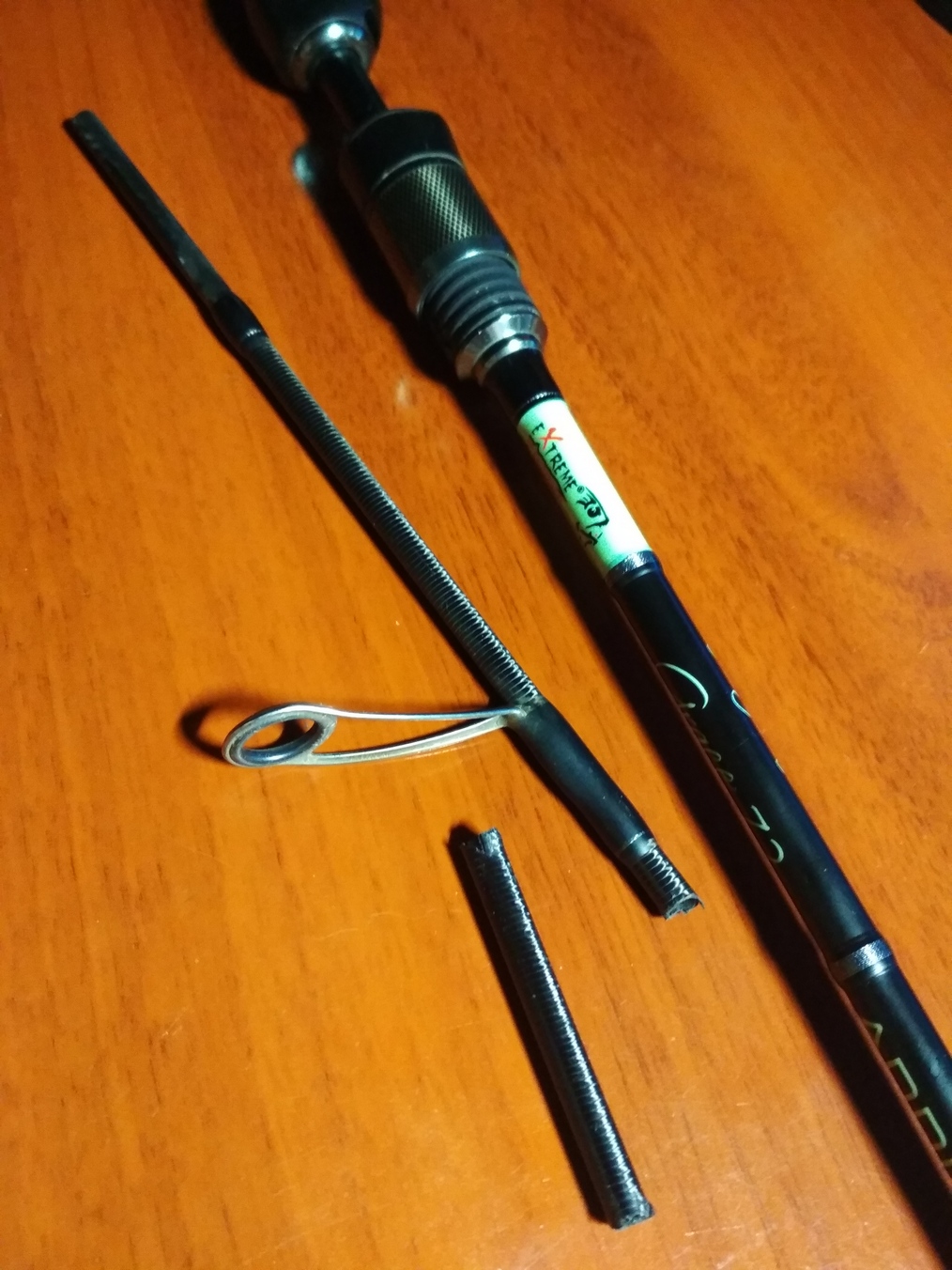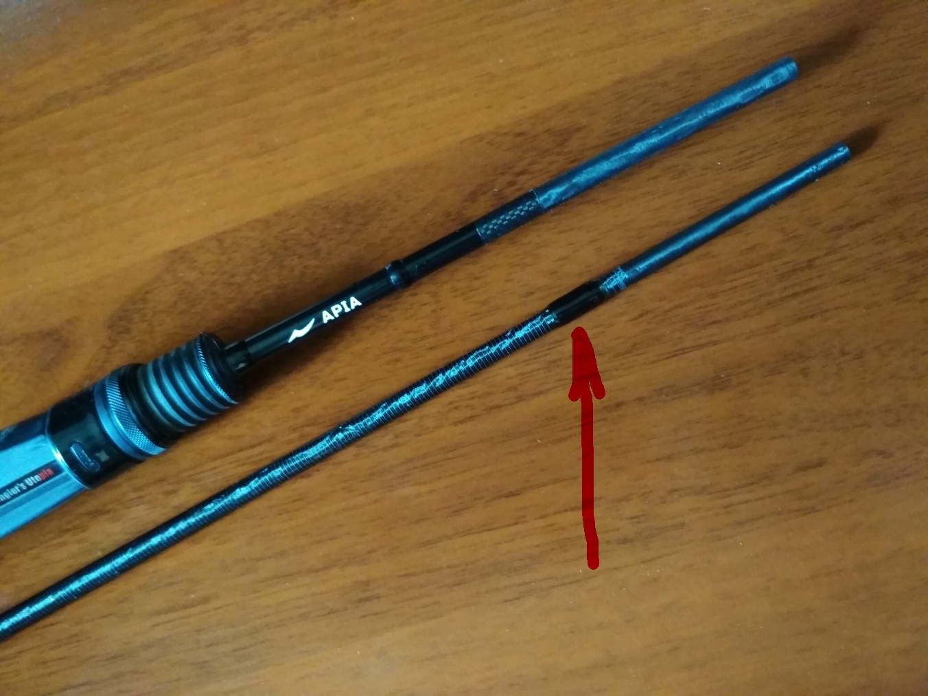 Спиннинг Graphiteleader Vivo Nuovo ,сломан по не осторожности в быту. Отремонтировал ..кто то.. путём вставки длинной в пол спиннинга)), естественно это всё сломалось, замучился её от туда доставать))