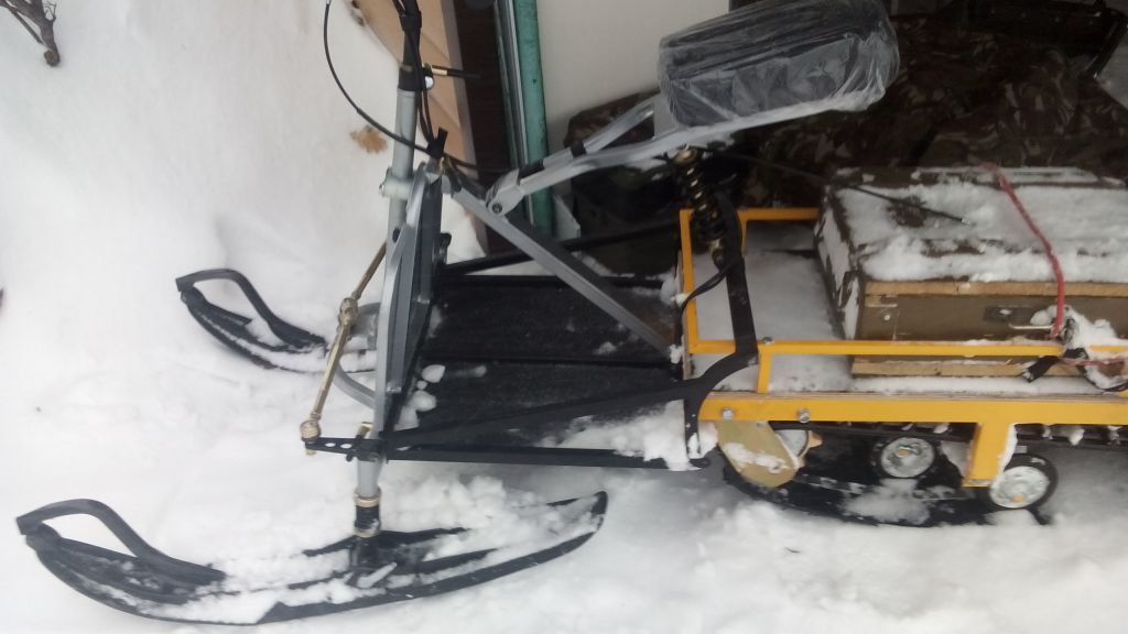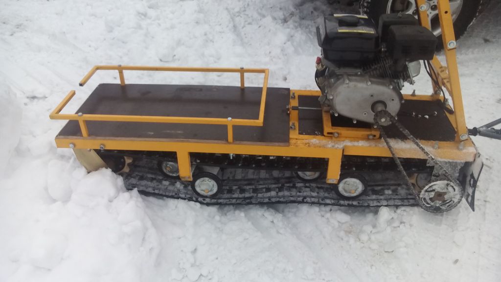 Гусеница Буран 380мм длина 1.5 метра, двигатель Лифан 6.5 л/с привод задний, подвеска вся Бурановская, катковая. Выпуск 2016г еще на обкатке, прлбег 20км. Тянет в санях 4х человек. Скорость 20-25км/ч разбирается и собирается одним ключом на 17 за 5мин. Весс в сборе 55кг по частям 30 и 25кг. Цена нового 47т.р. Я прошу 40т.р за собачку.