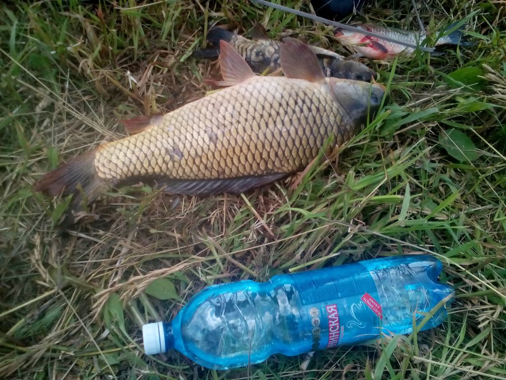 Были с товарищем с24 на 25. Водоём встретил нас проливным дождём минут на сорок.поклёвывал карасик,сначала был один обрыв,фрекцион не сработал,подклинил,а в сумерках у товарища клюнул карпик на двушку.в темноте выводить его ещё то удовольствие.ночью клюнул только один карасик.с утра снова поклёвывал карасик,и затем клюнул небольшой зеркальный карпик.был и меня один обрыв,сам виноват,забыл ослабить фрикцион. Часиков в 11 ещё одна поклёвка у меня и вот карп на два кило в подсаке.после этого начали собираться домой,были дела в городе.клевало на кукурузу.отдохнули замечательно,рыбалкой довольны,скоро поедем ещё.