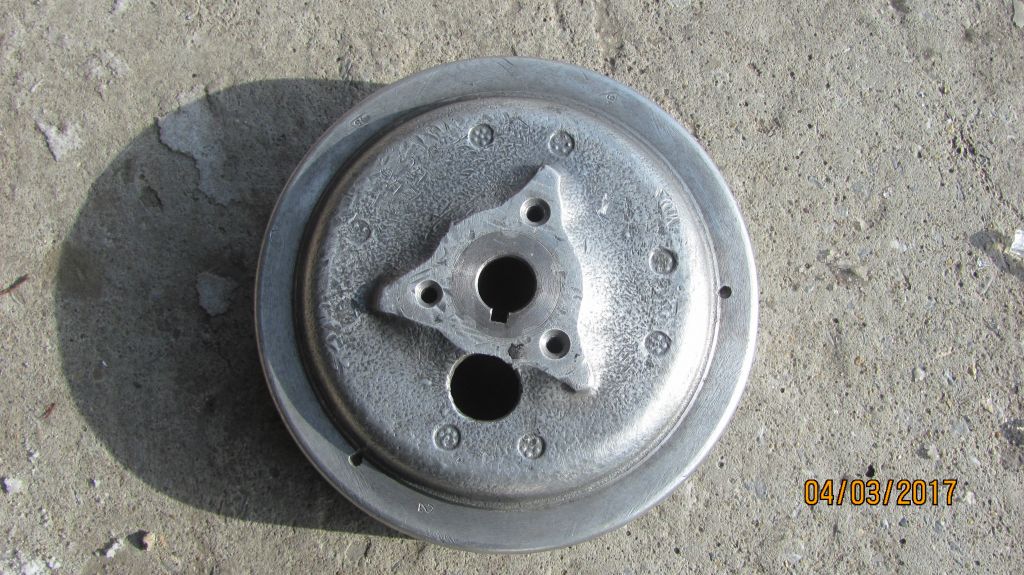 Этот нормальный вопрос решается профессионалами в заводских условиях. Необходимо выпрессовать старую втулку, проварить трещины аргоном, всё обточить и проточить посадочное под новую втулку, изготовить втулку под посадку с внутренним конусом и пазом под шпонку, запрессовать втулку и самое главное - отбалансировать маховик! :!: