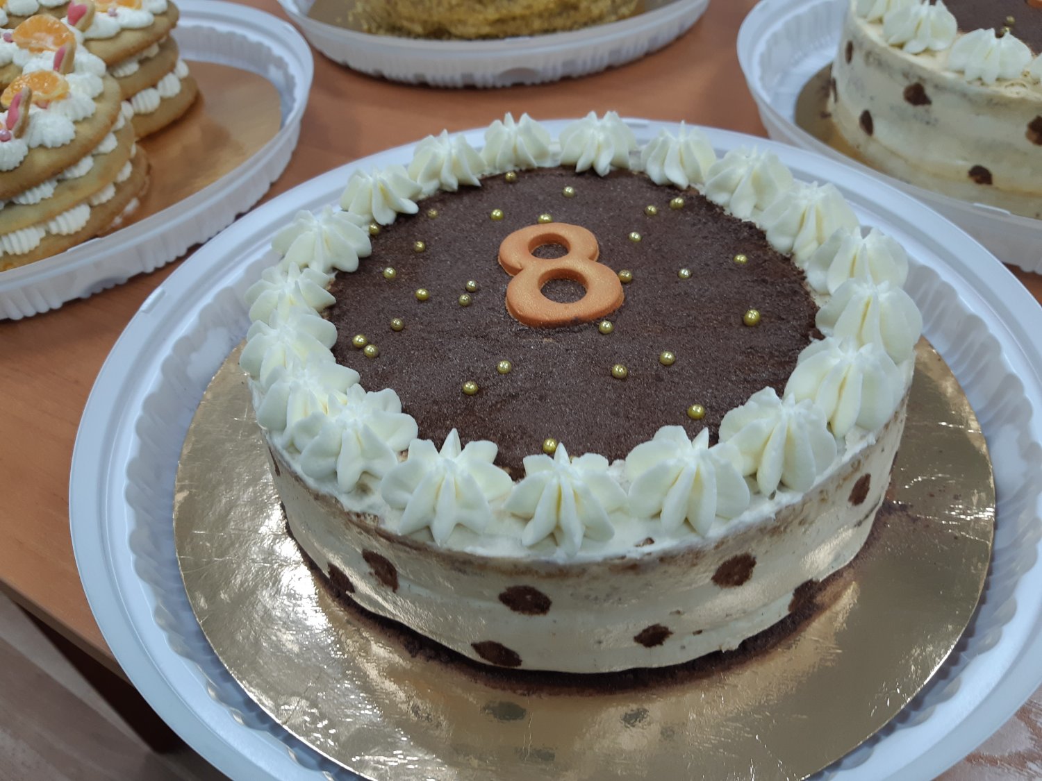 С серый64 Писатель-рыбак Регистрация 07.05.2011 Сообщения 367 Местоположение новосибирск 25.03.2019 #147 Торт "Цифра" (медовый). Мягкие, медовые или песочные коржи. Кем-чиз (сырно -сливочный), фруктовый или ягодный конфитюр, грецкий орех. Украшен: фруктами, конфетами, печеньем. Вес: 2,2 кг.(+-300гр.) Цена:700р.за1кг. Тел: 8 913 947 68 27- Лариса Последнее редактирование: 25.03.2019
