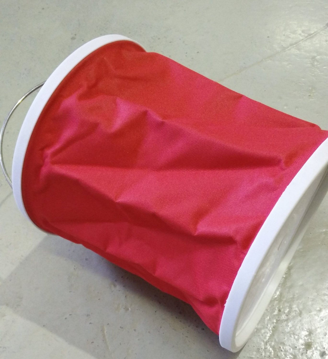 Складное мягкое ведро в чехле (26см. высота 22см. диаметр 8 литров ). Металлическая ручка, пластиковое дно, прорезиненная внутренняя сторона. Компактное и полезное изделие. Цена 120 руб.