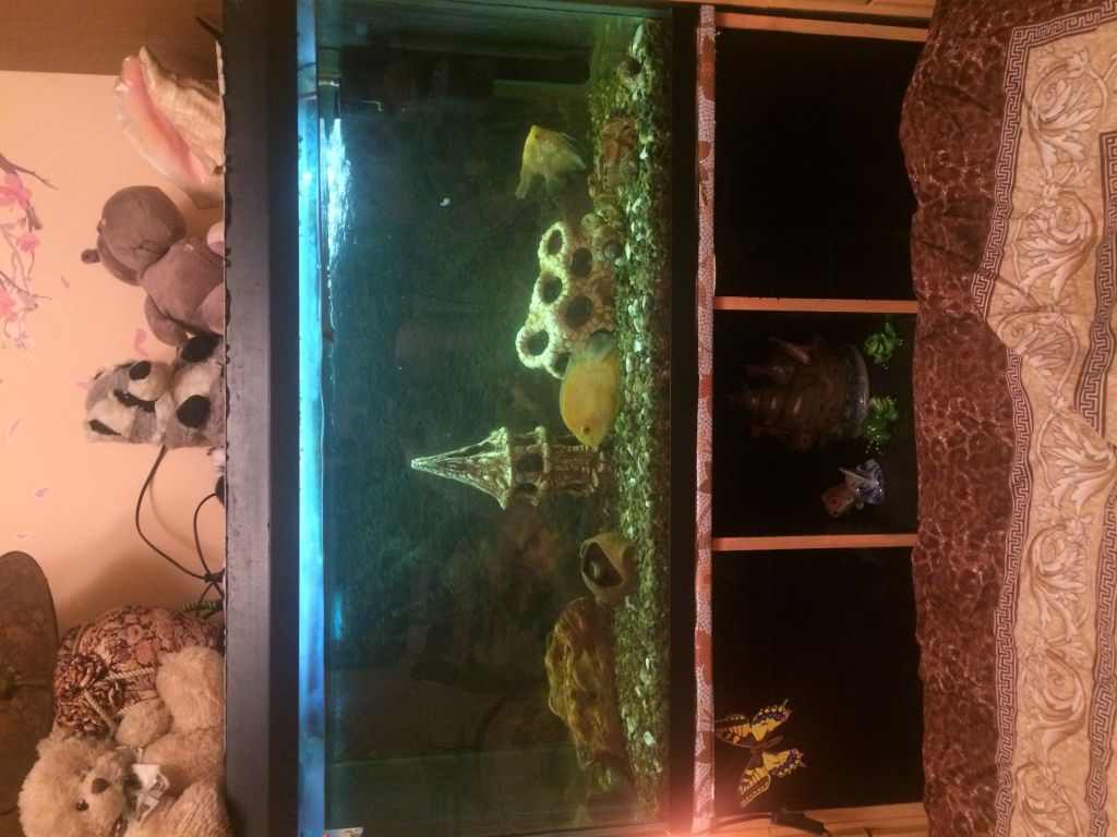 image.jpegОтдам аквариум 200 литров с тумбой под него и с немногочисленными его обитателями - рыбок 5-7. Прямо срочно отдам :D