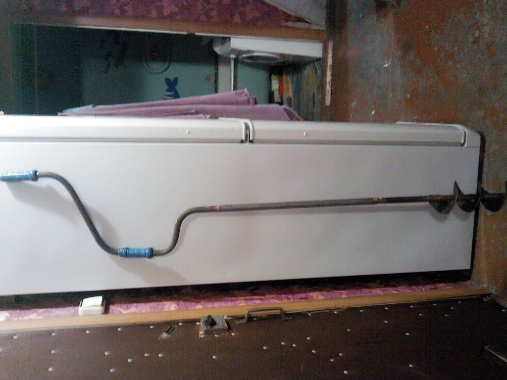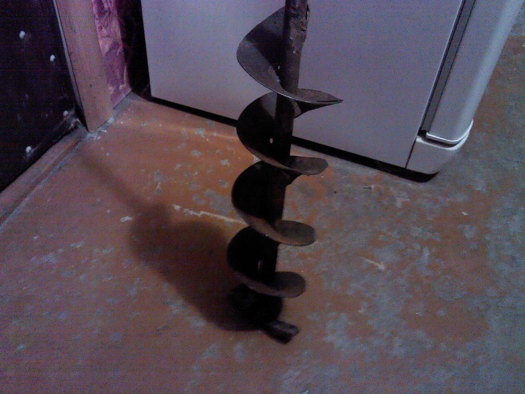 Летом сюда обратился человек с просьбой отдать бур. Каюсь, его данные не записал, но обещал привезти осенью. Привёз. Бур далеко не новый (ленинградский). Шнек переваривался "на коленке". требует эстетической доработки. Ножи подходят стандартные с размером по осям отверстий 16 мм. Крестовина (головка) механических повреждений не имеет. Моё мнение: после небольшого ("не хирургического") вмешательства бур пригоден для бурения тонкого льда. Ножей нет. Условие: если до 26-го этот человек не обратится, то потом отдаю "первому встречному". Бур в Бердске.IMG00725.jpg