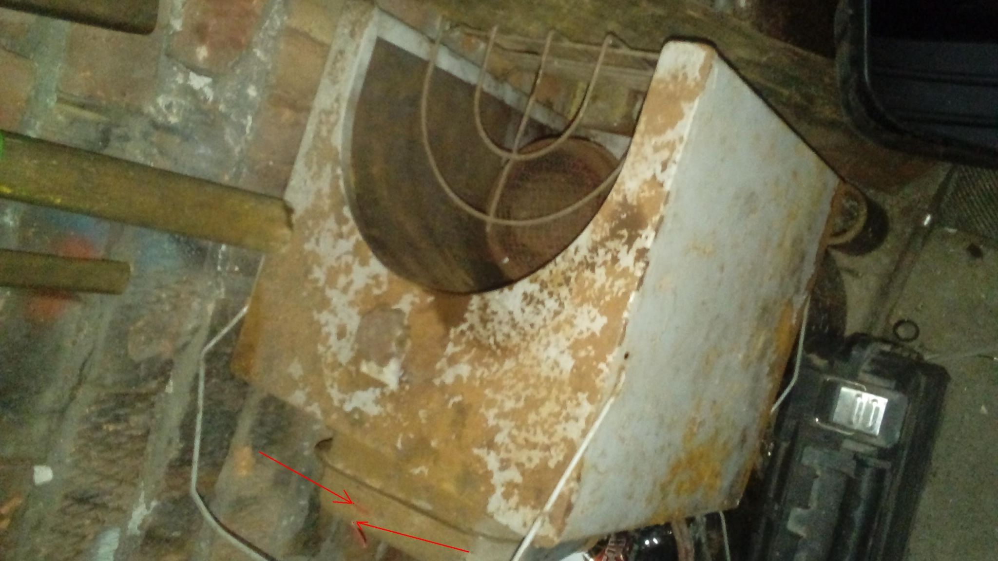 В гараже лежала лет десять. Покрылась ржавчиной, и проржавели две маленькие дырочки( на фото обозначил их красными проводочками)