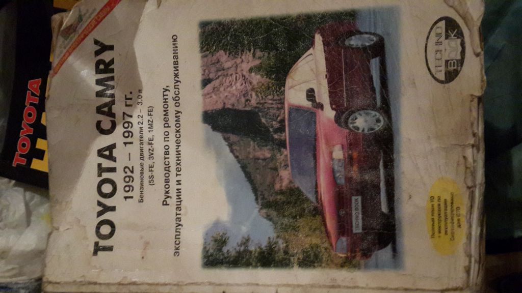 1. книгу по ремонту Toyota Camry 2.2 универсала 93 года выпуска (точно уже не помню) - книга не в очень хорошем состоянии, есть оторванные страницы, но комплект полный