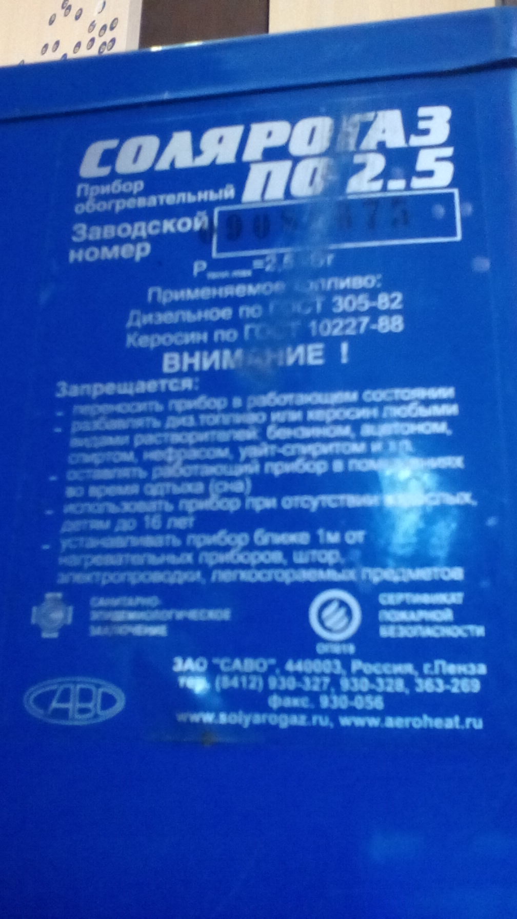 "Обогреватель на жидком топливе - солярке и керос. СОЛЯРОГАЗ ПО - 2,5 саво"
