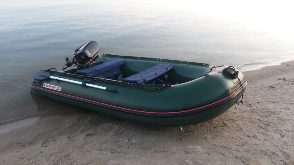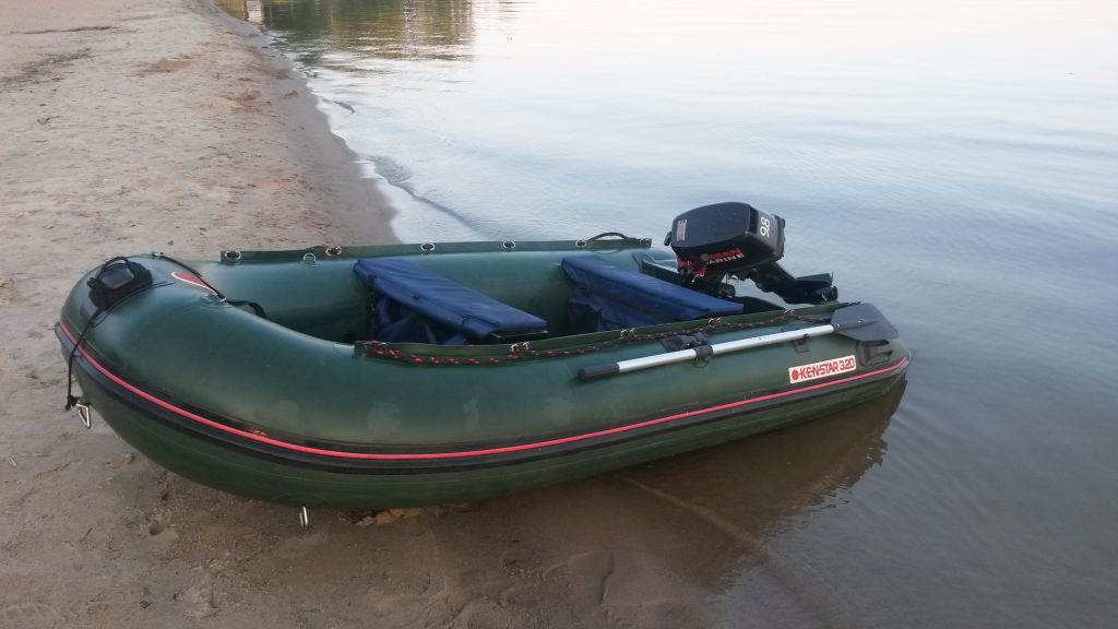 Продам ПВХ лодку KENSTAR 320 с алюминиевым пайолом. Длина 3200, вес 55 в двух сумках. Укомплектована мягкими сидушками с сумками, носовой сумкой, якорным рымом. Лодка 2010 года, без порезов и проколов, использовалась мало (выездов по 5 в сезон), хранилась в теплом гараже. Причина продажи - переход на НДНД.