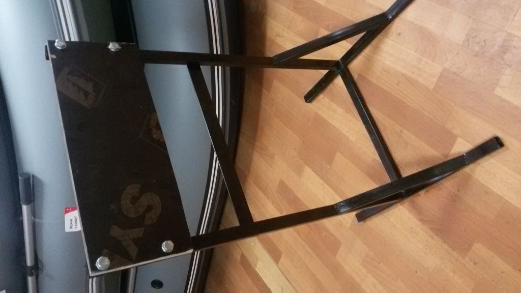 В воскресенье сделал за 2 часа. Потрачено 310 см профтрубы 20х40, 3 электрода, 1 отрезной диск для болгарки, 4 болта с гайками, кусок дсп. Себестоимость примерно 320 рублей.