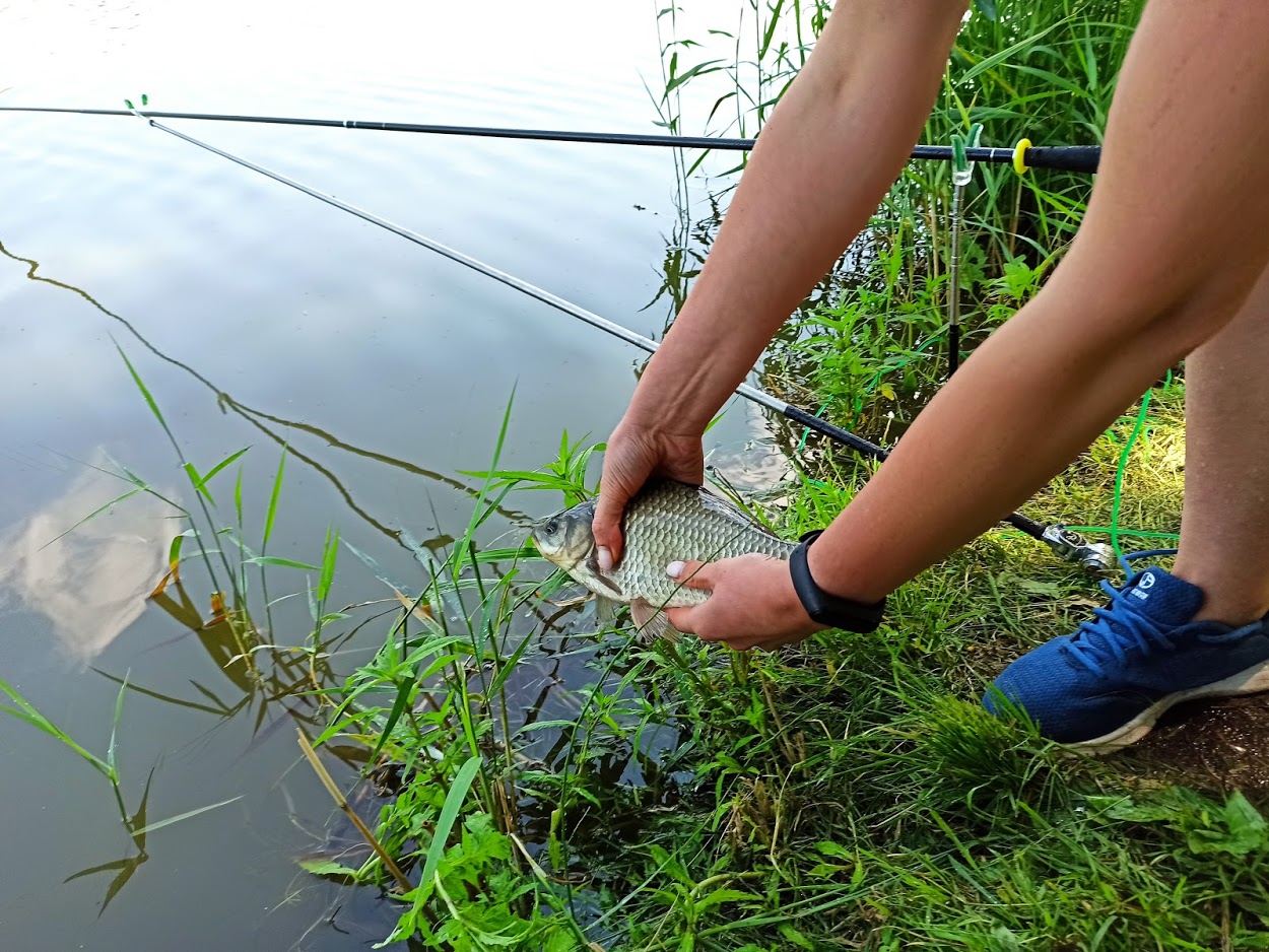 По рыбалке - фидер молчал, херабуна добыла нам 5 мелкокарпиков и штук 5 приличных карасевичей. Сильно доставала мелкая плотва (на фото). Сильно в процесс не упирались, рыбачили в удовольствие, я так вообще отсыпался в палатке. Всю рыбу выпустили обратно в пруд. Приедем ещё!