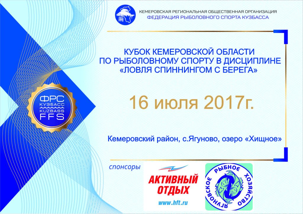 Соревнования проводятся 16 июля 2017 года в Кемеровском районе, с.Ягуново, озеро «Хищное» в два тура по 3 часа в один день. Каждый тур состоит из 4 периодов.