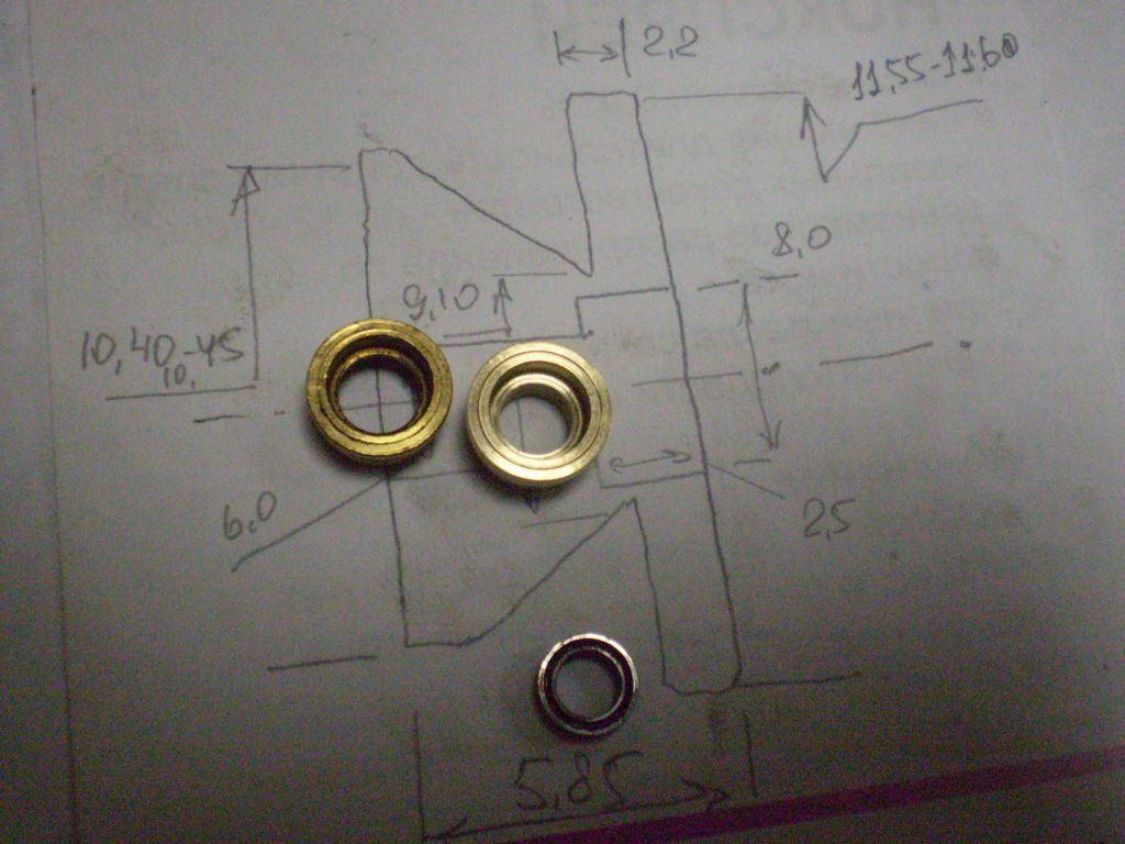 Пока самый интересный выточенный ролик с внутренней проточкой и полочкой под подшипник 5*8*2,5.