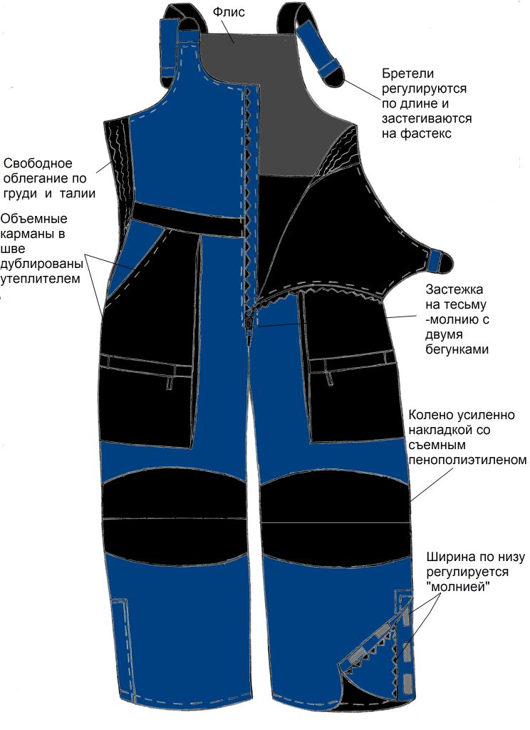 На п/комбинезоне на коленях кармашки для пенки (можно убрать/поставить)
