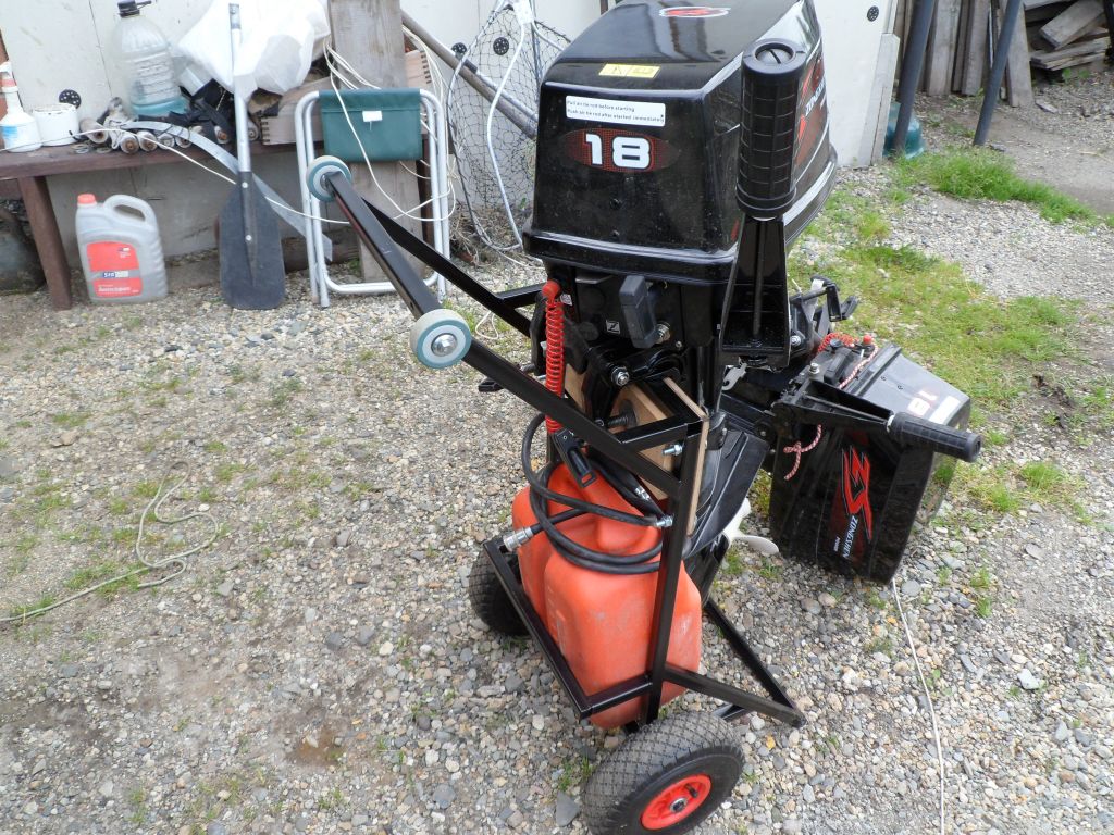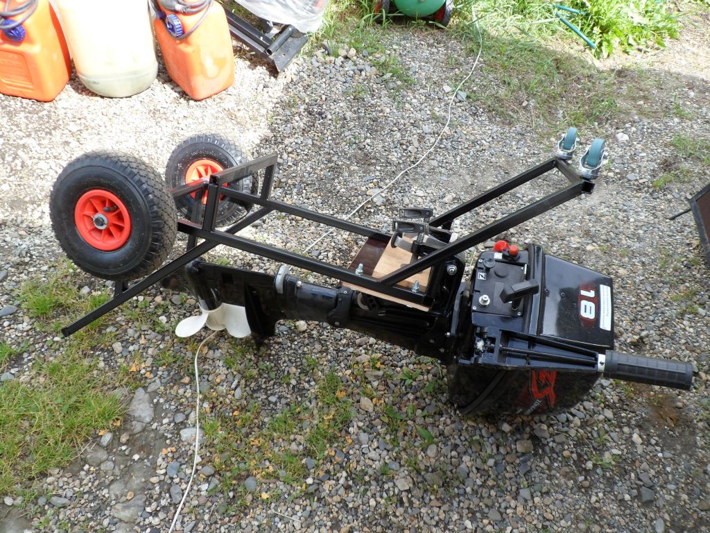 Продам тележку для ПЛМ, широкие пневмоколеса, дополнительные колесики для загрузки в авто, место под бачок, полимерная окраска, сменная планка для упоров мотора, цена 4000р