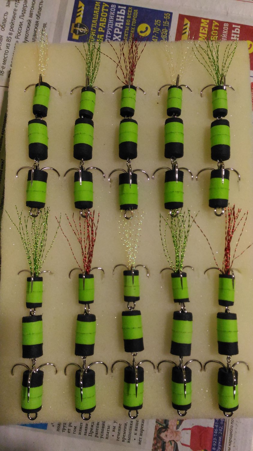 Фото № 1, 2, 3, 4, 5. Тройник Mustad (№2 и 4). Проволока нержавейка 0,6 мм.