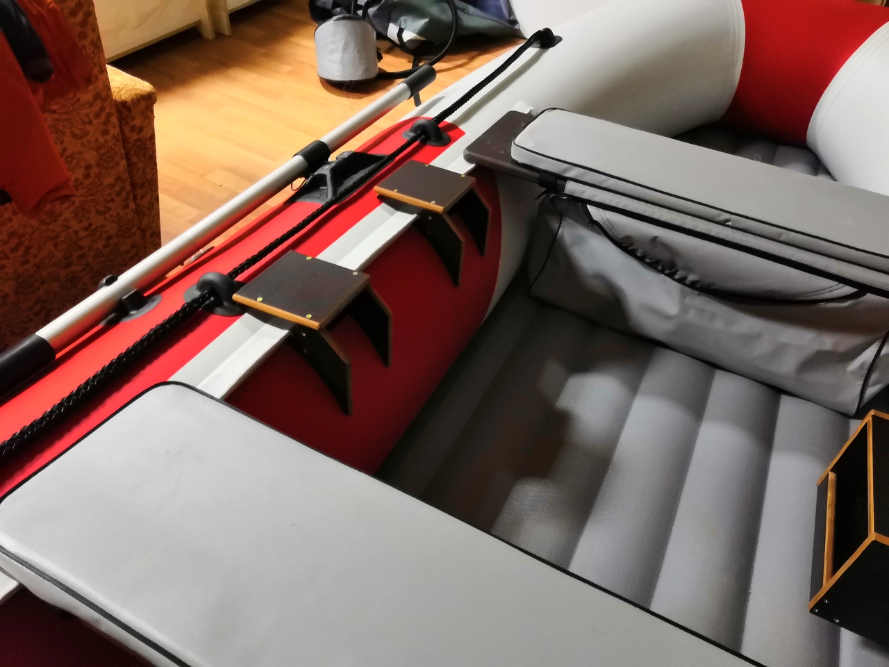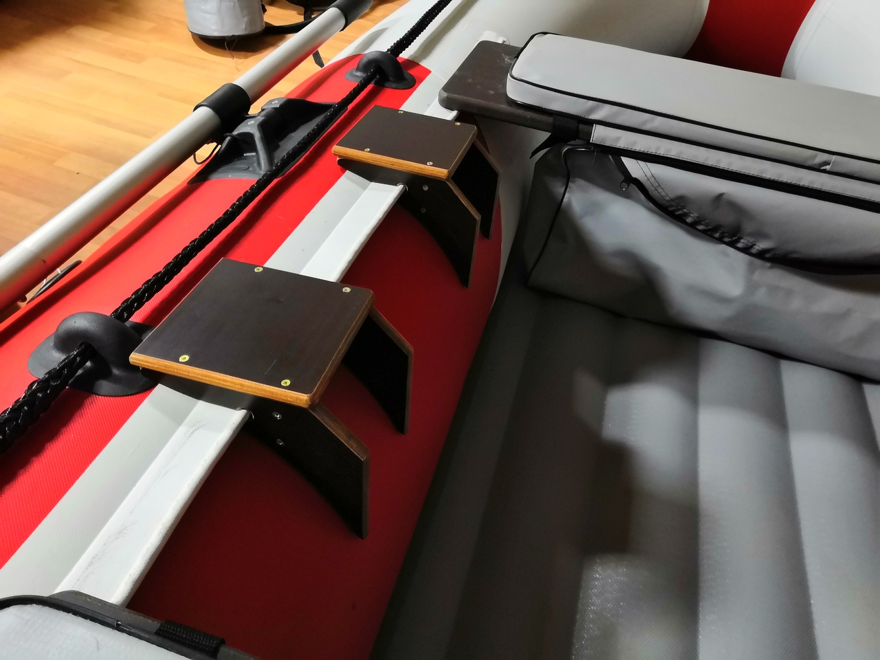 Здравствуйте.Размер ликтроса разный на разных лодках поэтому не прикручиваю.Прикрутить можно измерив расстояние на родной банке и сделать также.Фанерная столешница должна плотно прилегать к баллону.Ликпазы развести по краям столешницы.Торцы я обрабатываю водостоком.Но это совсем не обязательно.На стройках эта фанера зимует на улице,ни чего не разбухает.Некоторые виды кресел можно прикрутить только через большие отверстия.К большинству кресел сначала прикручивания поворотную после крутим к раме.