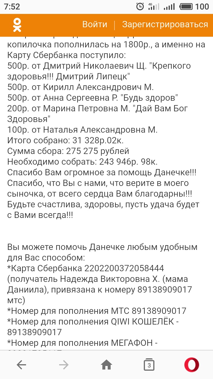 *Карта Сбербанка: 4276 4408 8998 0667 (получатель Надежда Викторовна Х. (мама Даниила) привязана к номеру МТС 89138909017)