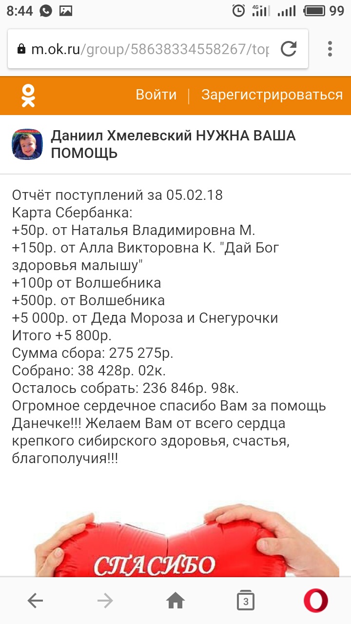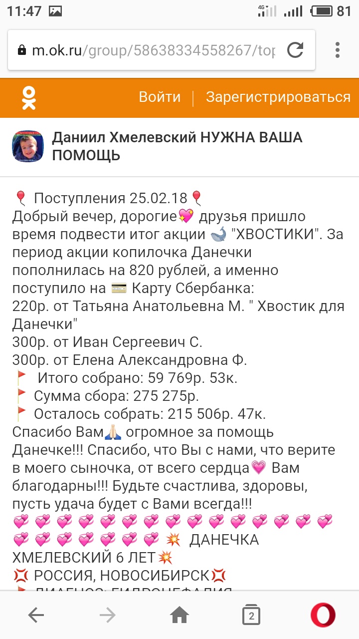 Друзья, время неумолимо, 1-ое марта уже совсем скоро, не проходите мимо страдающих, дайте надежду на выздоровление ребенку.