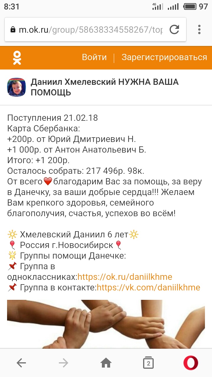 Если у вас есть возможность поделиться ссылкой на эту страницу, или на группу Даниила и Надежды в одноклассниках со своими друзьями, знакомыми, близкими, разместить информацию на другом интернет-ресурсе, на своих страницах в соцсетях, в общем где угодно, то пожалуйста, уделите несколько минут своего времени и сделайте это. Бескрайне важен любой перепост этой информации в любом другом сообществе и т.п.