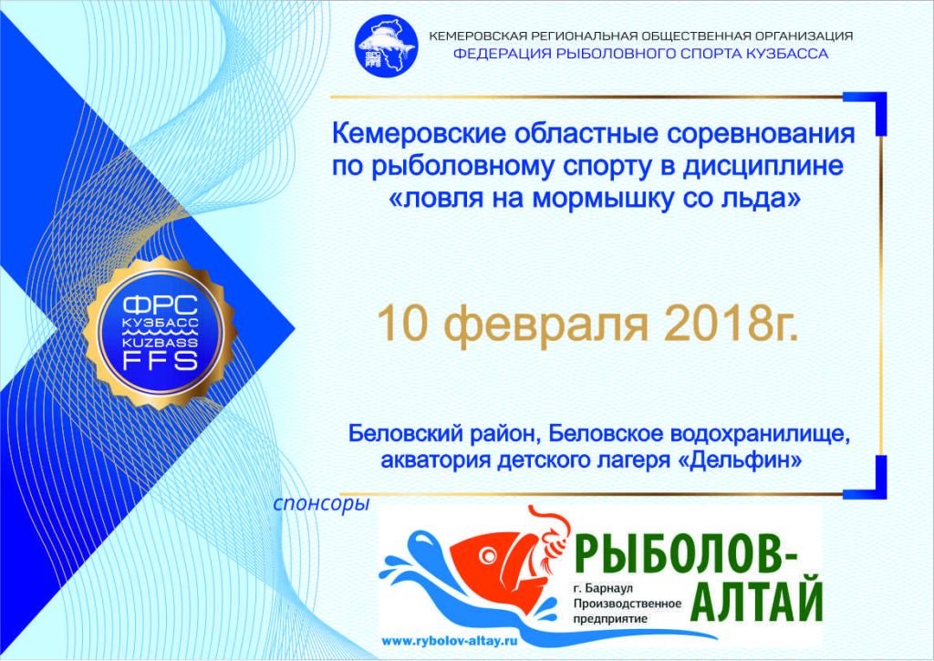 Областные соревнования по рыболовному спорту в дисциплине «ловля на мормышку со льда» (далее – соревнования) является соревнованием в личном и командном зачете, проводится в соответствии с региональным календарным планом официальных физкультурных мероприятий и спортивных мероприятий, проводимых на территории Кемеровской области в 2018 году (265-1) и правилами вида спорта «рыболовный спорт».