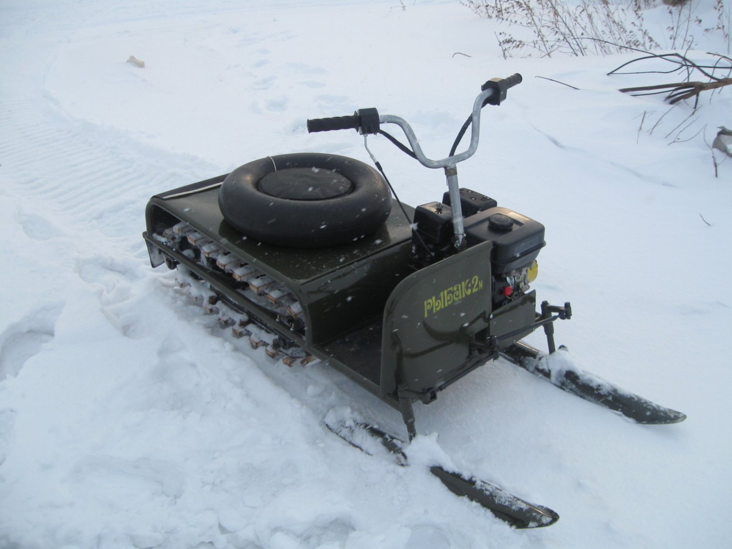Оказалось-не последнее) Хочу показать любопытное фото самого первого экземпляра "Рыбак2М" .Двигатель 4,5л.с(!) Масса 50кг.Траки еще деревянные).Фото сделано на проведении кантри кросса в с.Раздольное ,2005 примерно,год.