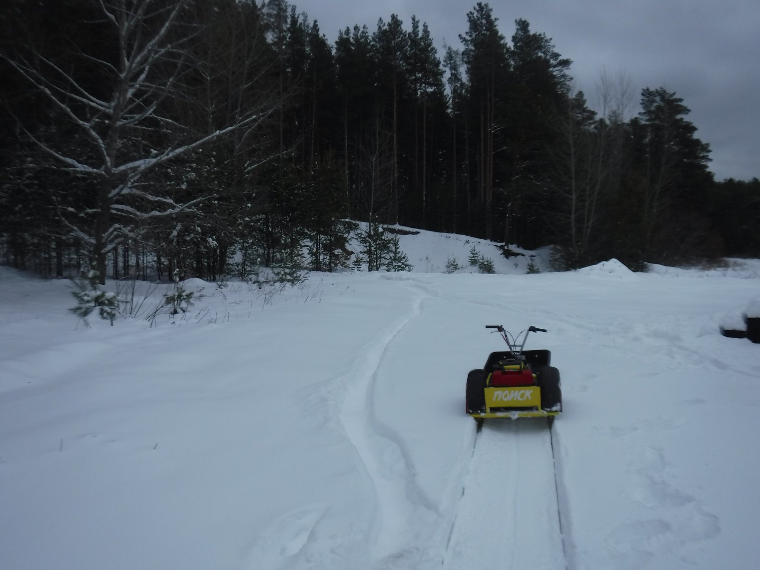 @БАБ4.., По отзывам владельцев: по голому льду ездят втроем легко(в передних санях и сзади).По заснеженным дорогам вдвоем-легко. С напарником и грузом по льду через снег-наслуд 30-40см на пределе,т.к. техника скоростная,передаточное отношение трансмиссии мало для такого груза,можно подпалить сцепление. По снегу до 20см-легко с грузом до 100кг. Если поставить ведущую звездочку на 11-12 вместо 16 зубьев,пойдет с грузом и через 30-40см.с меньшей скоростью. Не проскальзывает,т.к. до 75% массы приходится на движители. Видео с прицепом (с небольшим грузом)