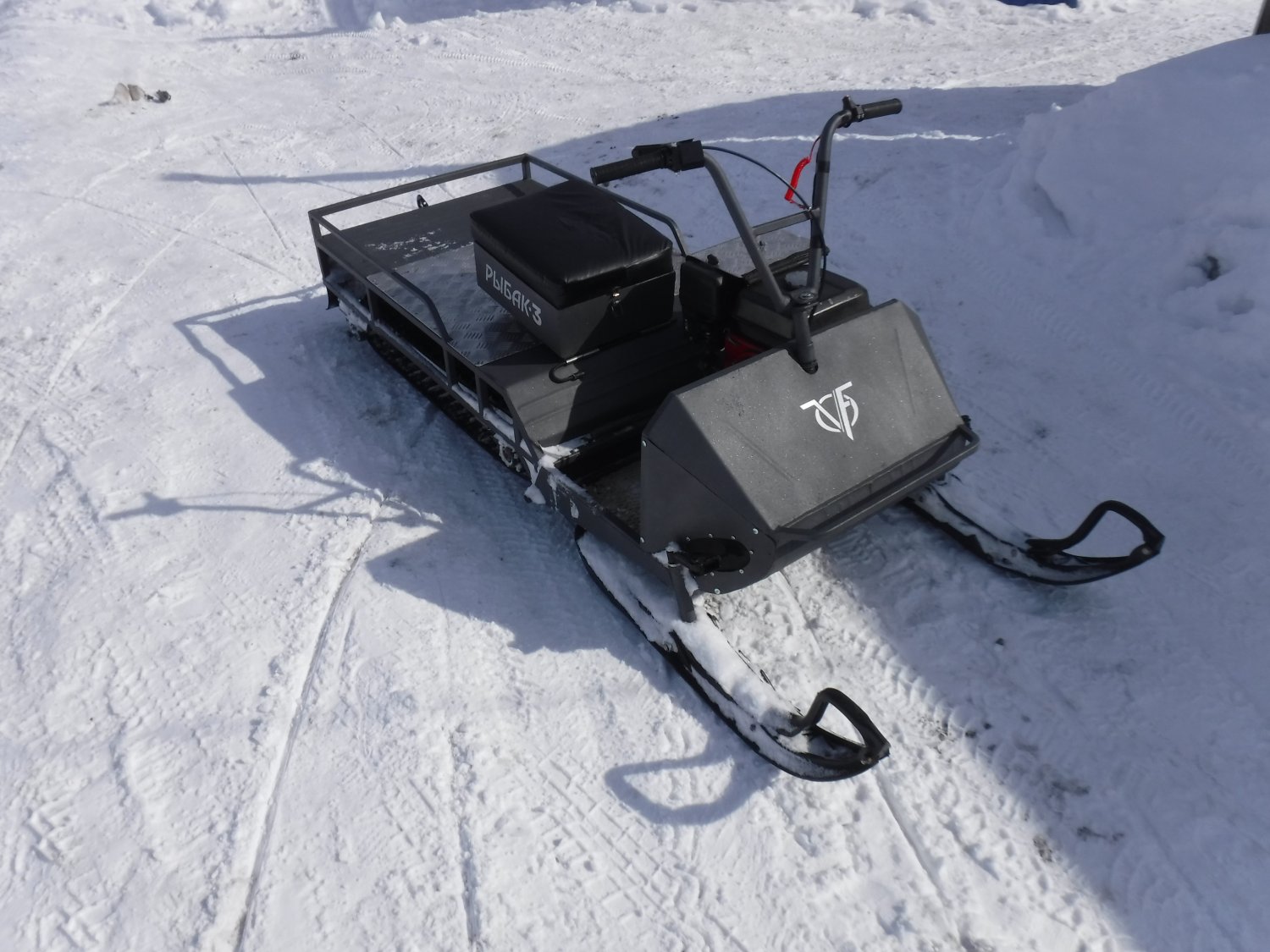 Прототип новой модификации.Их три:"Рыбак3К",3 Д и 3С. Отличия в длине новой гусеницы .Внешне серийные также будут отличаться.Расположение двигателя по центру или сбоку-по договоренности