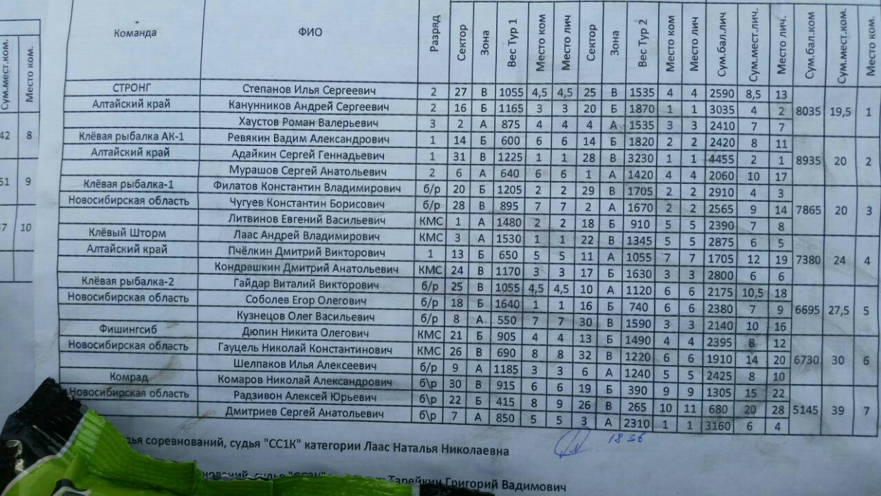 Спасибо всем участникам за борьбу! Очень интересный водоем! Ждем вас на наших соревнованиях! Уверен, что придет время, и алтайским командам не так легко будет занимать верхние строчки на ваших соревнованиях!