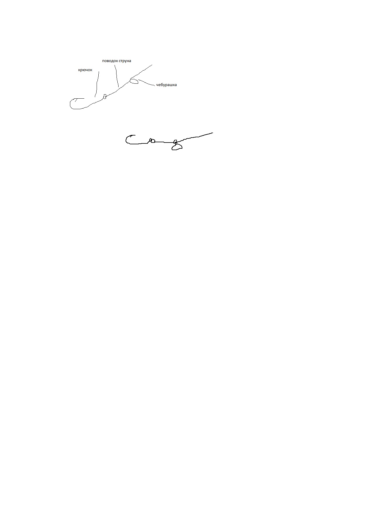 Все верно.Booster сказал(а):А я понял, что человек спрашивал про такой монтаж: к одному ушку чебурашки привязан шнур, а к другому через карабин присоединён крючок, т.е. просто карабин вместо заводного кольца