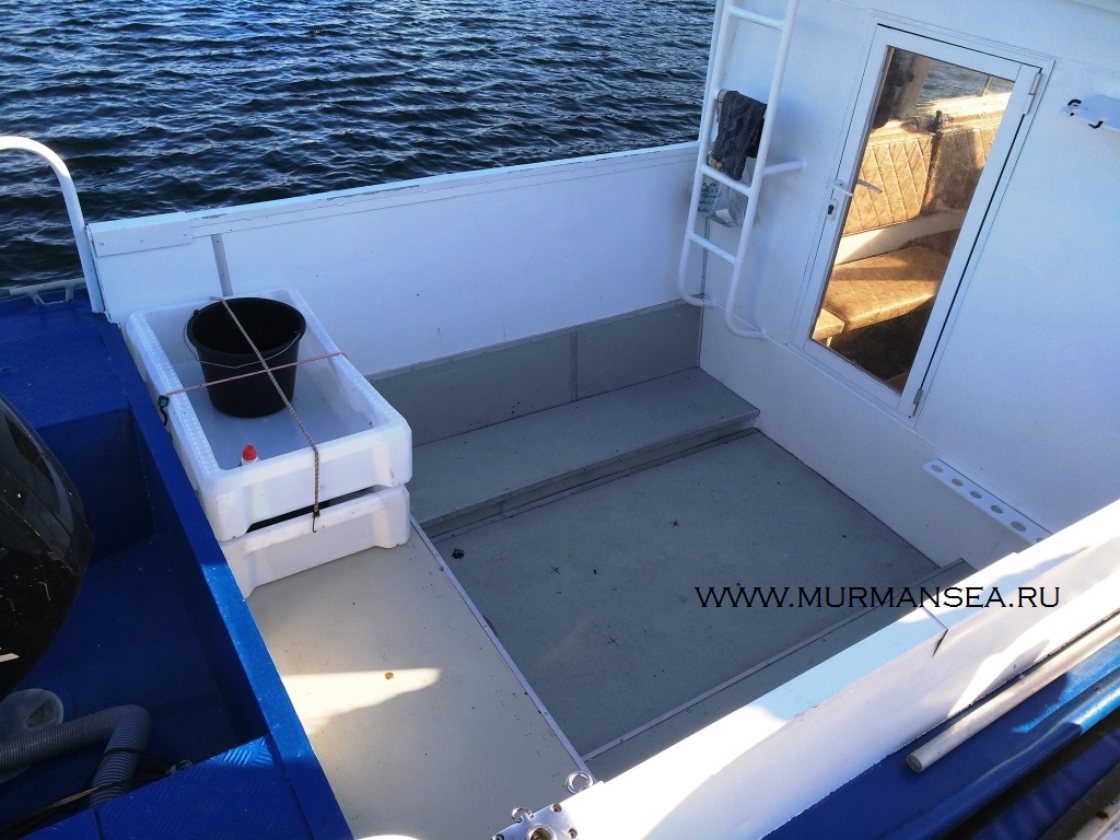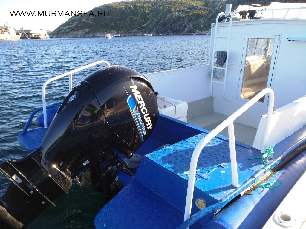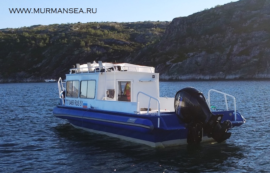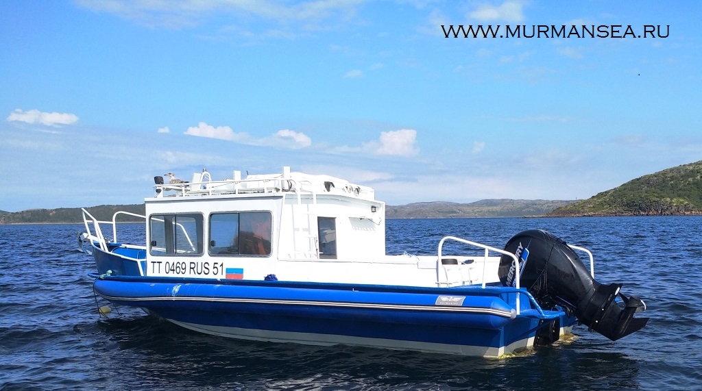 Катер чрезвычайно надежен - корпус из морского алюминия с блоками плавучести, ПВХ були по бортам, новый мотор Меркурий 150л.с. Длина этого быстроходного судна 9,2 метра, ширина 2,5 метра. В рубке удобно могут расположиться 5 рыбаков и рулевой-гид. На переднем кокпите могут рыбачить 2 человека, на заднем 3 человека. Новый современный эхолот, навигатор, морская рация, спасжилеты, комплекты снастей и багор - естесственно присутсвуют.