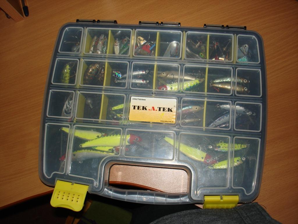 По внутреннему периметру пластикового ведра с крышкой приклеивается полоска от туристического коврика, за которую подвешиваются воблеры. В зависимости от размеров ведра можно приспособить под любой размер воблеров (вплоть до троллинговых). Внутрь ведра также можно положить чтонить съестное... ну или попить.